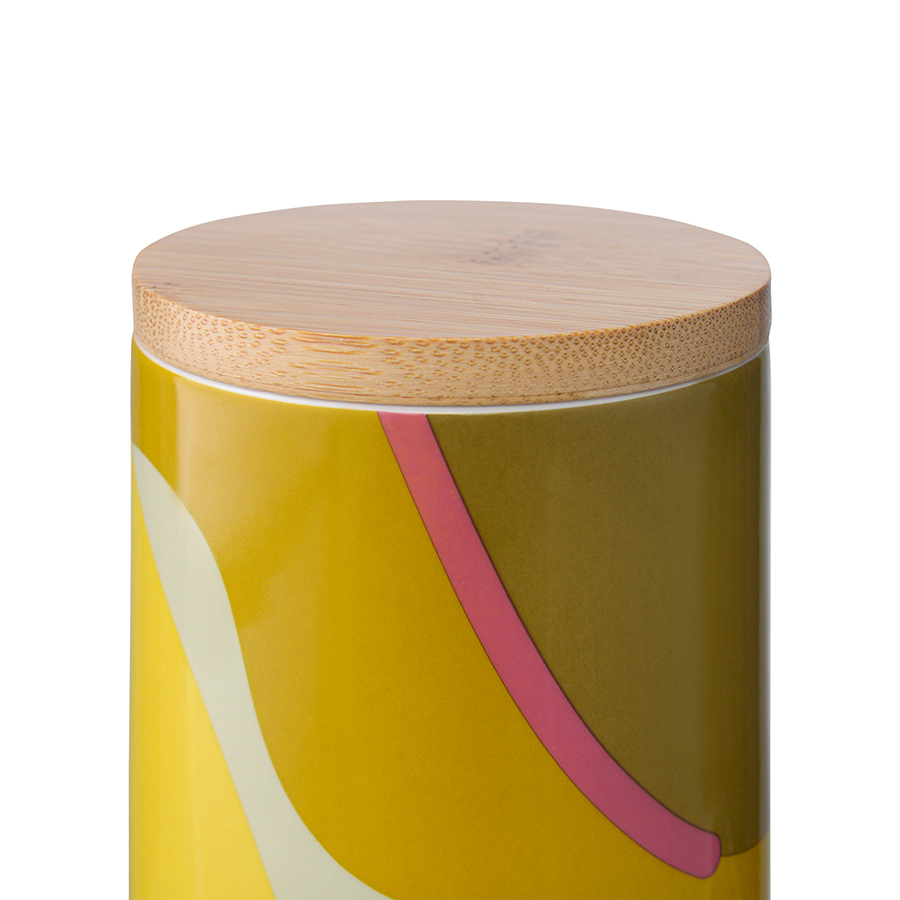 "Банка для хранения горчичного цвета с авторским принтом из коллекции Freak Fruit прекрасно подходит для хранения бакалеи. Изделие в духе абстракционизма притягивает взгляды, освежает интерьер и делает его более современным. Принт не имеет повторяющегося раппорта и представляет собой единую законченную картину.