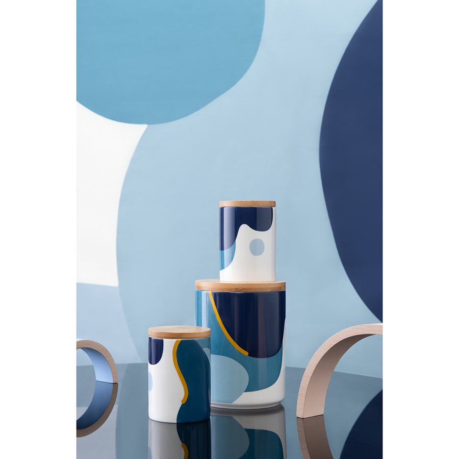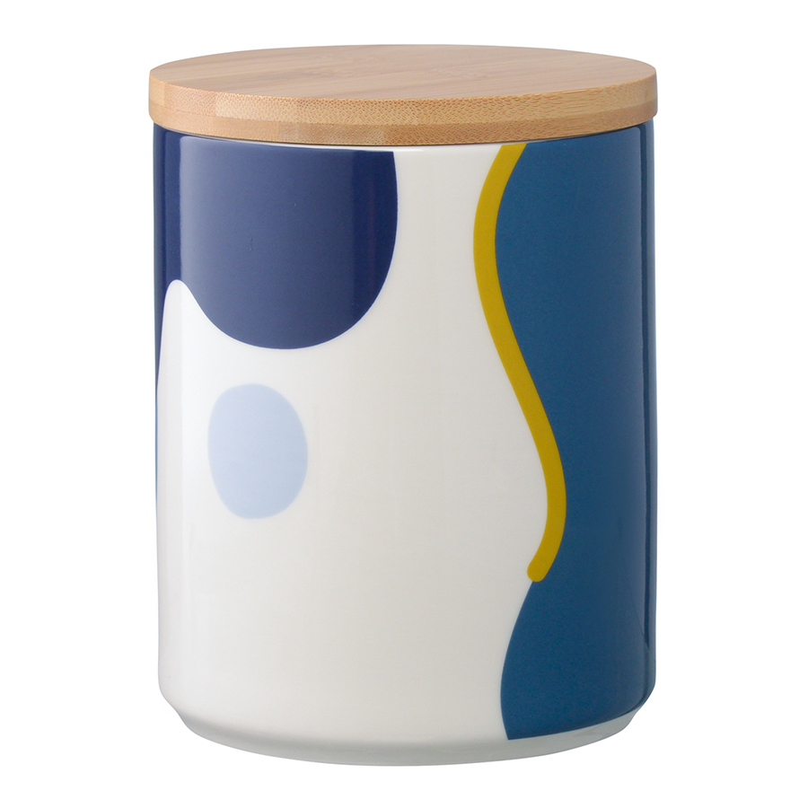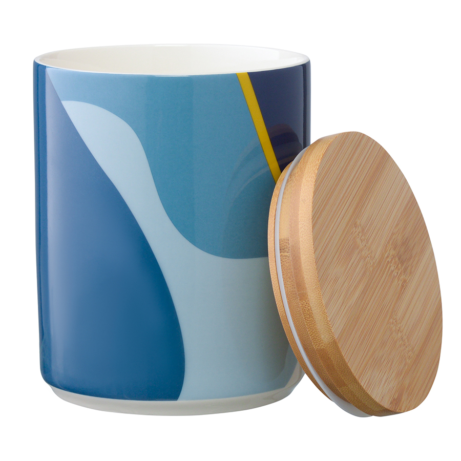 "Банка для хранения синего цвета с авторским принтом из коллекции Freak Fruit подойдет для хранения бакалеи. Изделие , ,в духе абстракционизма притягивает взгляды, освежает интерьер и делает его более современным. Принт не имеет повторяющегося раппорта и представляет собой единую законченную картину.