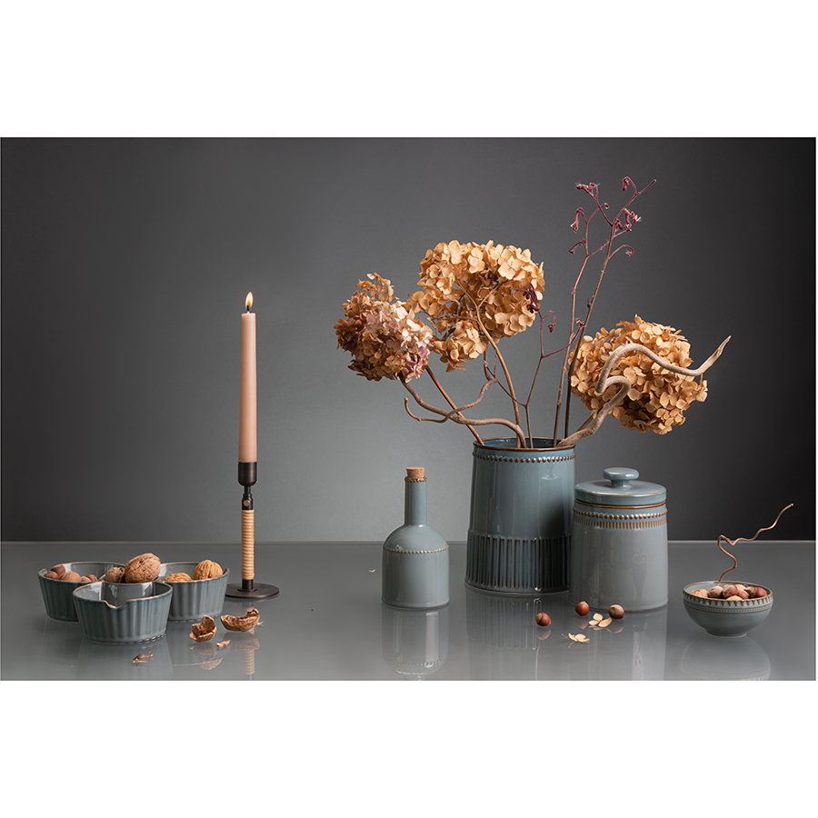 "Банка для хранения темно-серого цвета из коллекции Kitchen Spirit поможет навести порядок на кухне и выигрышно дополнит любой интерьер. Емкость идеально подходит для сахара, круп, муки и других сыпучих продуктов. Посуда из фарфора с дизайном в рустикальном стиле прекрасно гармонирует с предметами сервировки из стекла, керамики, бамбука. Лаконичный фактурный декор в сочетании с глянцевой глазурью обеспечивает изделию презентабельный вид. Экологически чистый и практичный материал отличается прочностью, устойчивостью к сколам, легко моется. Все предметы из коллекции Kitchen Spirit отлично комбинируются между собой.