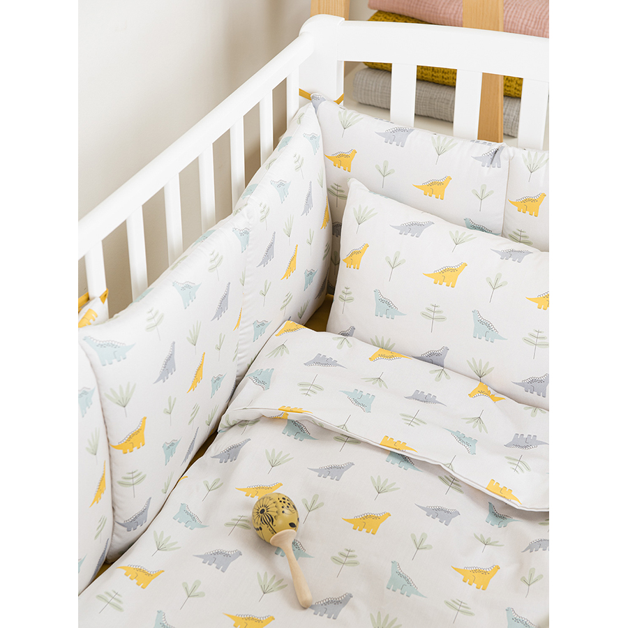 Бортик в кроватку из сатина с принтом Dinosauria world из коллекции Tiny world, 360х35х5 см