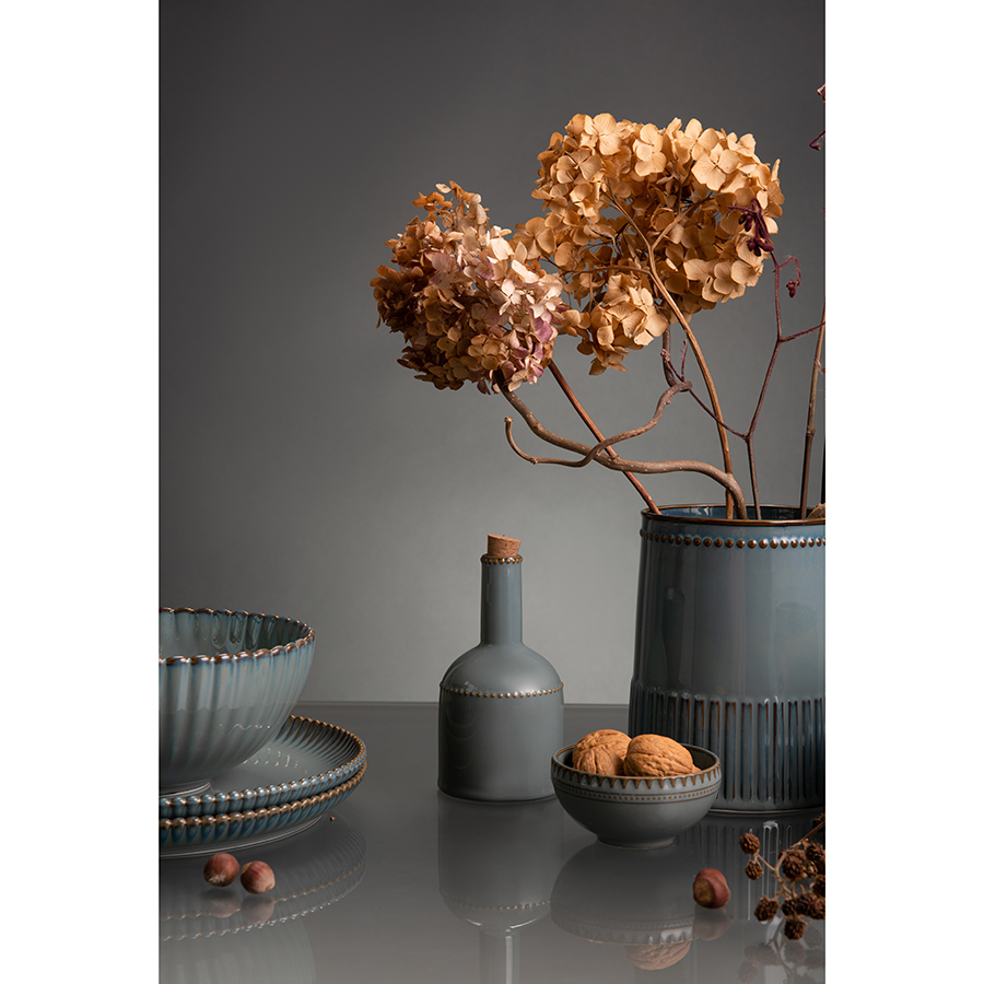 Отличительной особенностью линейки является покрытие из реактивной глазури, которое создает на поверхности посуды уникальные узоры. Во время обжига фарфора возникает химическая реакция, обычно плавление или окисление, в результате которой и получается нужный рисунок. Благодаря такой обработке найти два идентичных изделия практически невозможно. Именно за счет своей индивидуальности и неповторимости узора столовая посуда и аксессуары для сервировки с реактивной глазурью стали трендом в мире дизайна и декора.