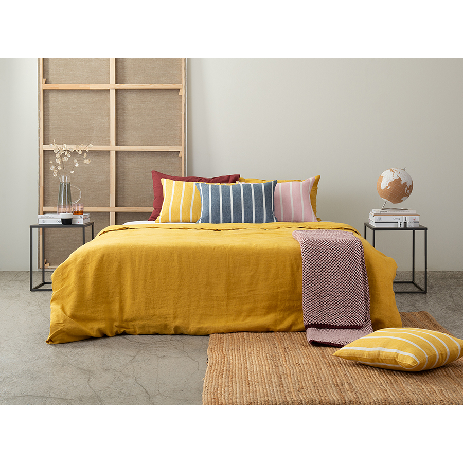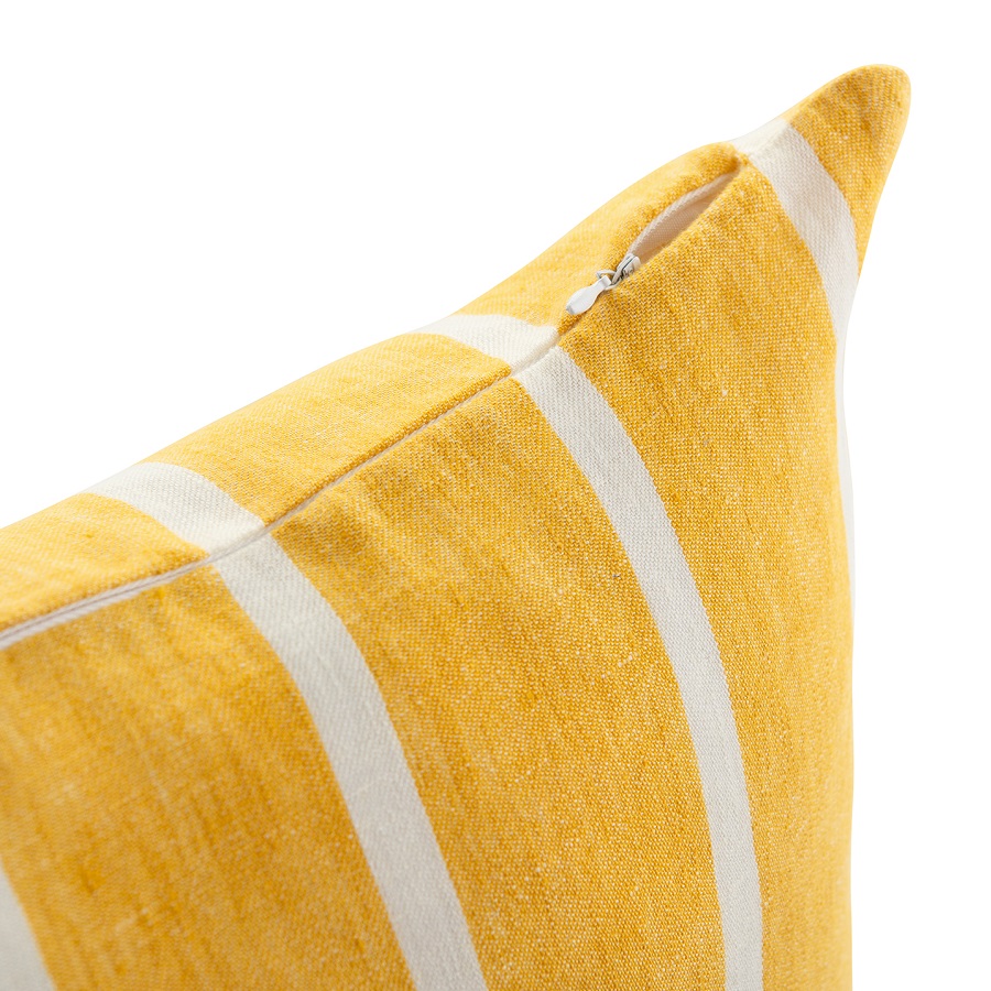 "Чехол на декоративную подушку в полоску горчичного цвета из коллекции Essential добавит настроения в ваш интерьер. Он выполнен изо льна, гипоаллергенного материала, который прост в уходе и долгое время сохраняет презентабельный внешний вид. Яркий практичный чехол горчичного оттенка впишется в любой интерьер и будет хорошо сочетаться с остальными подушками. Модель застегивается на потайную молнию.