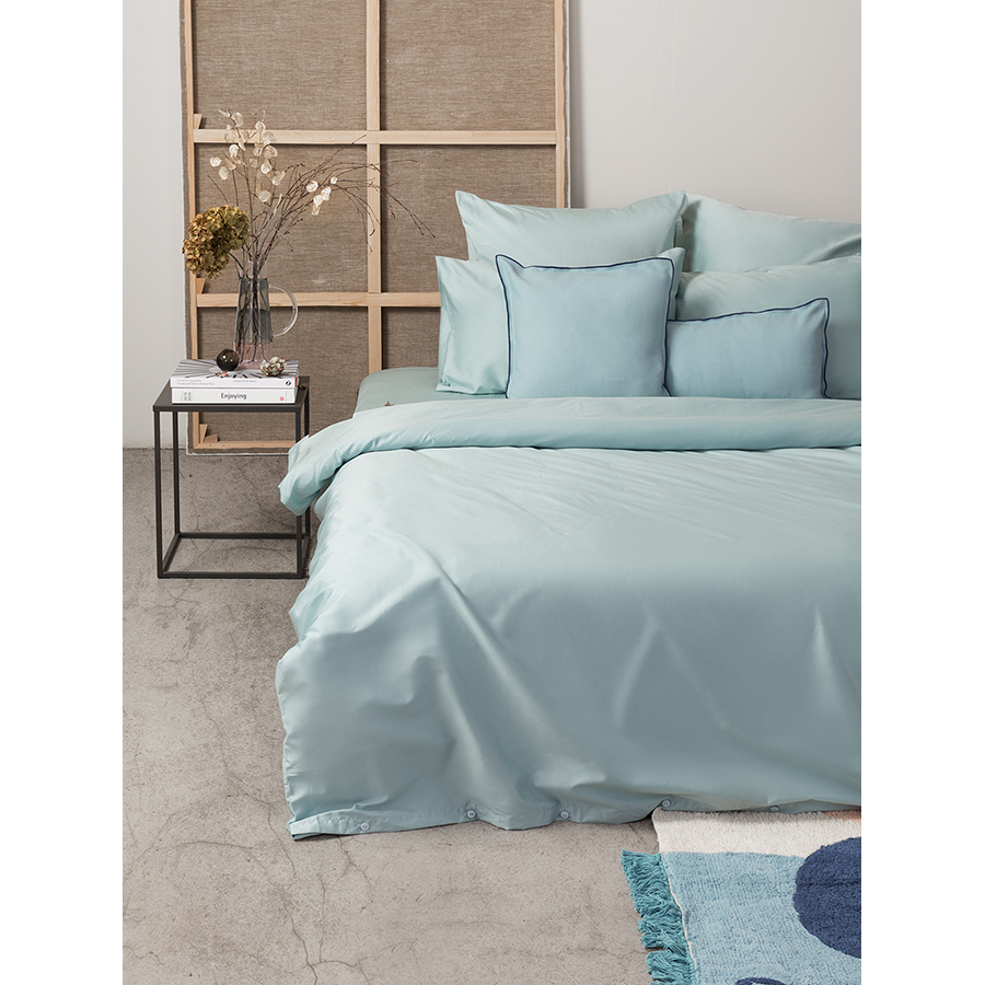 Чехол на подушку из фактурного хлопка голубого цвета с контрастным кантом из коллекции Essential, 45х45 см