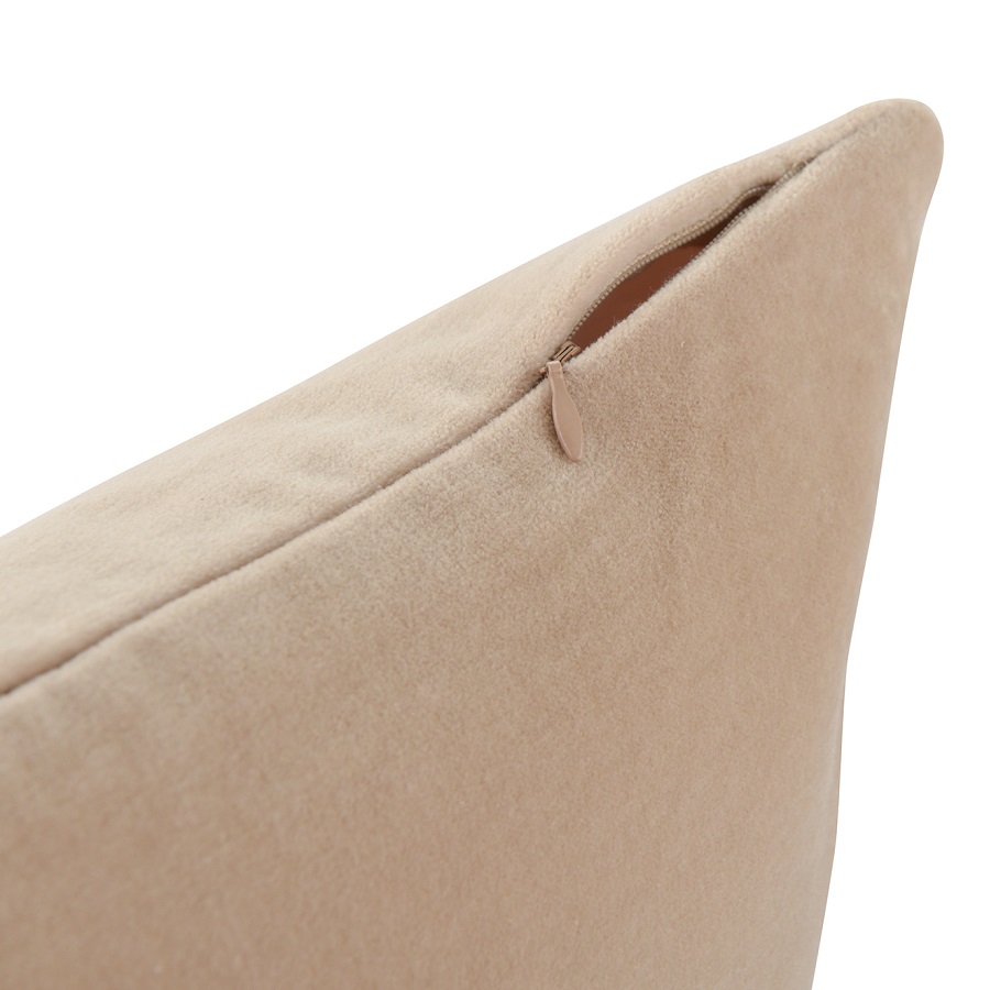 "Благодаря базовому цвету однотонный чехол на подушку из хлопкового бархата бежевого цвета легко впишется в любой современный интерьер и добавит уюта в гостиной и спальне. Нежный, приятный на ощупь хлопковый бархат не электризуется, не вызывает аллергию, и за ним легко ухаживать. Застежка – потайная молния в боковом шве.