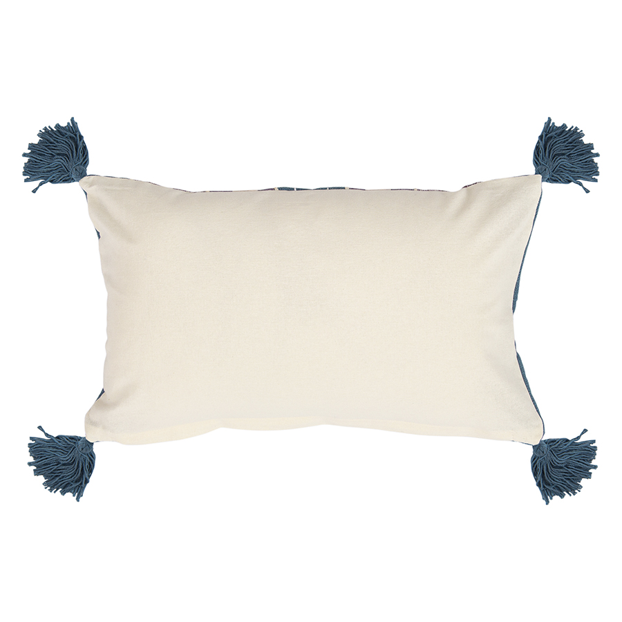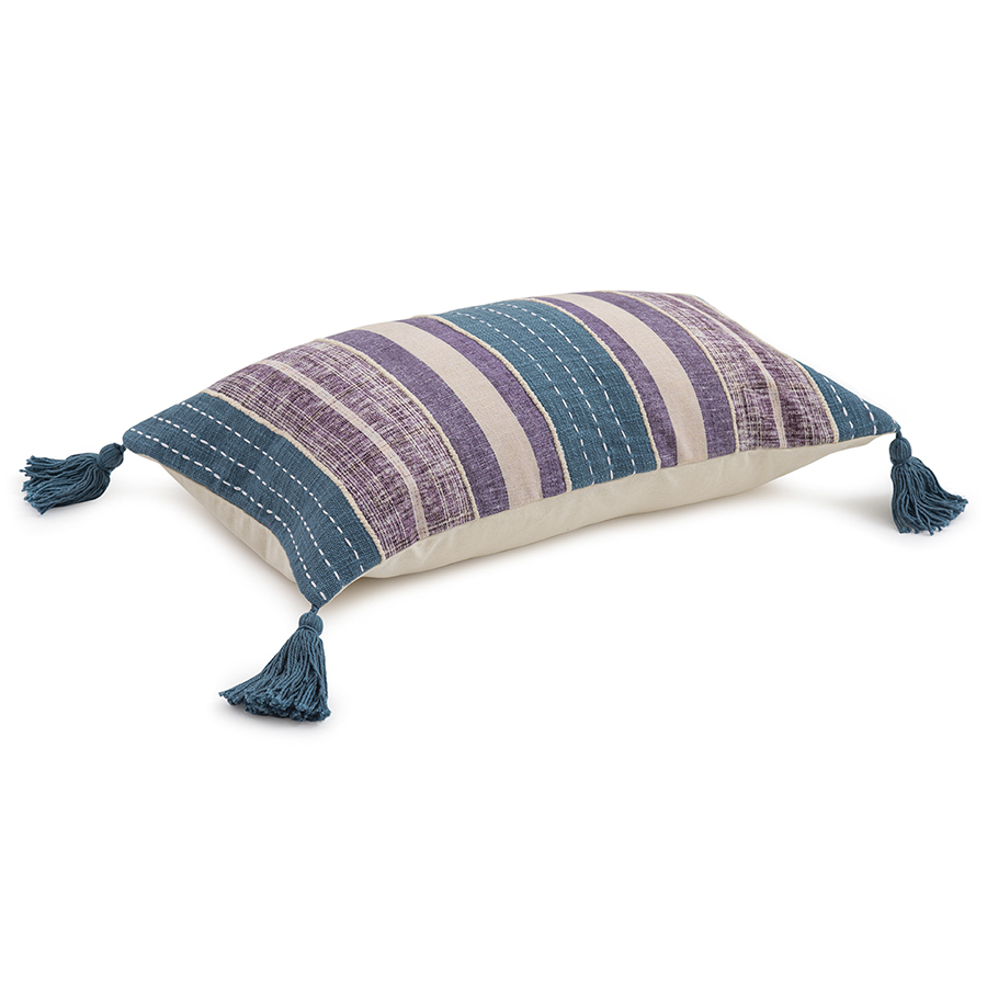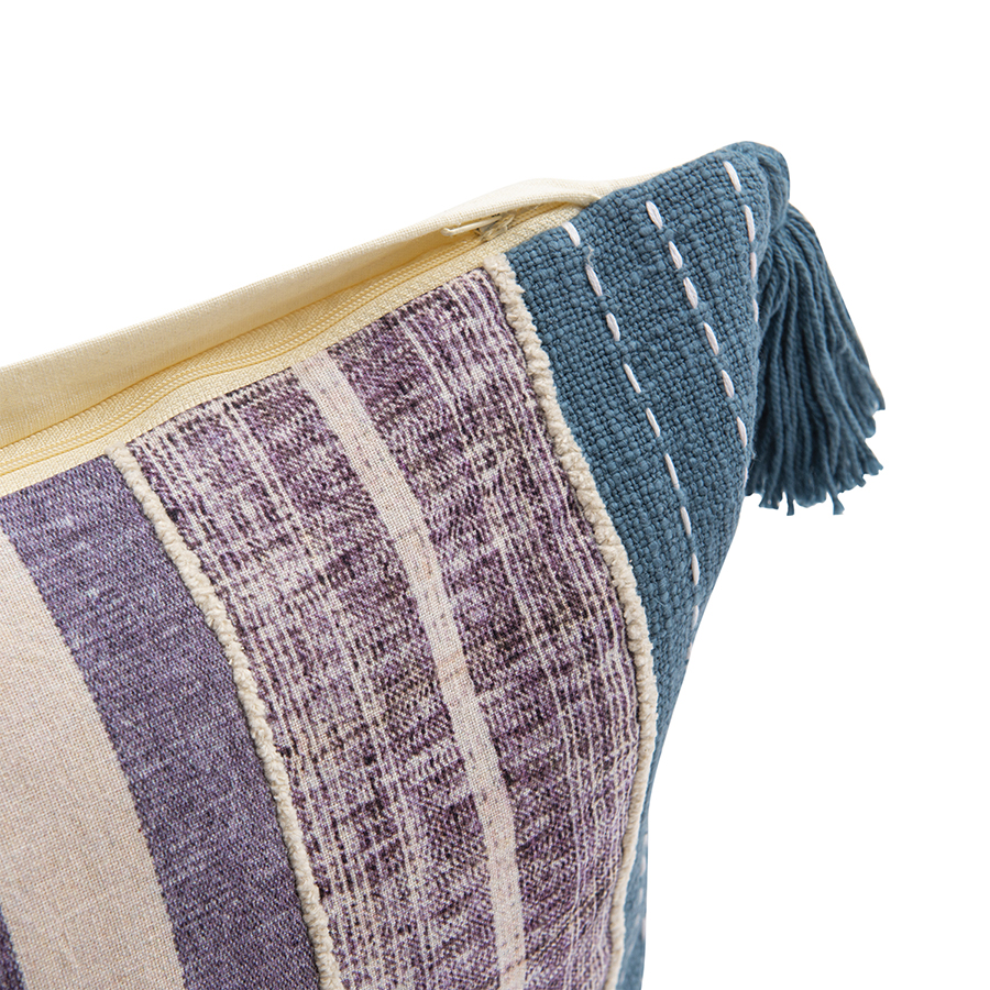 "Чехол на подушку из плотного хлопка в полоску из коллекции Ethnic добавит этническую нотку в любой современный интерьер, сделав его более уютным и оригинальным. Контрастный рисунок в сине-голубой гамме удачно дополняют декоративные элементы в виде объемных кисточек. Дизайн особенно актуален для таких стилевых решений, как эклектика, фьюжн, кич и др. Изделие из 100%, хлопка отличается устойчивостью к износу, линьке, не электризуется и не вызывает аллергических реакций. Застегивается чехол на скрытую молнию в боковом шве.