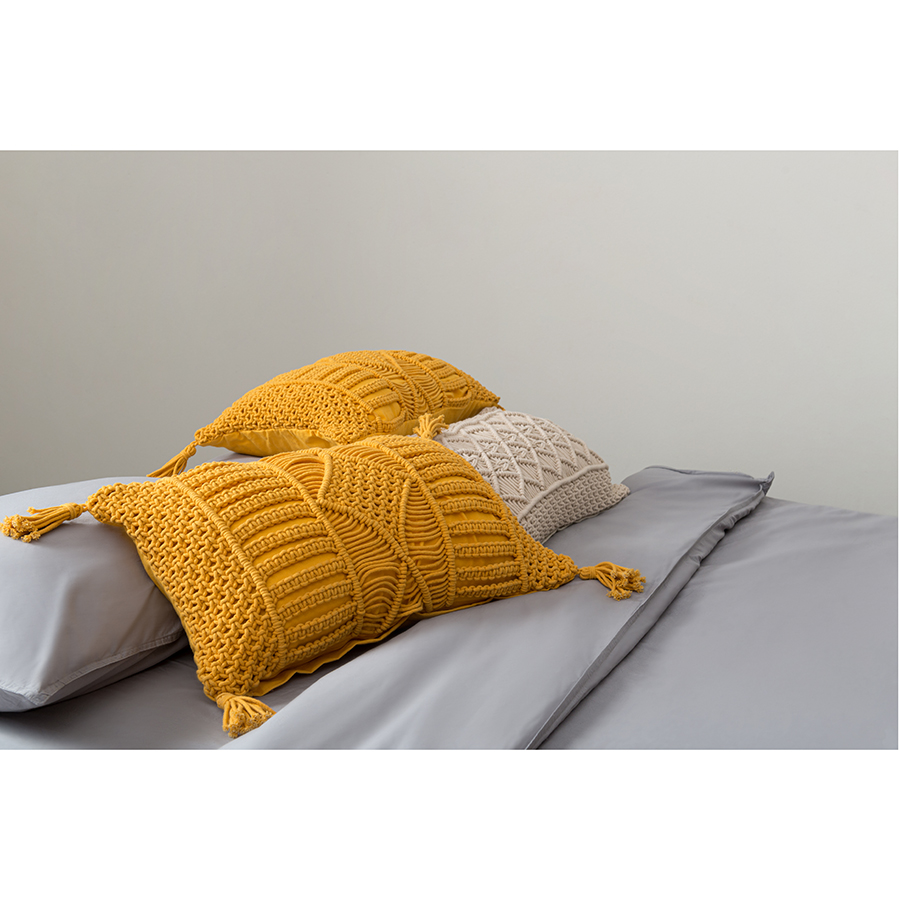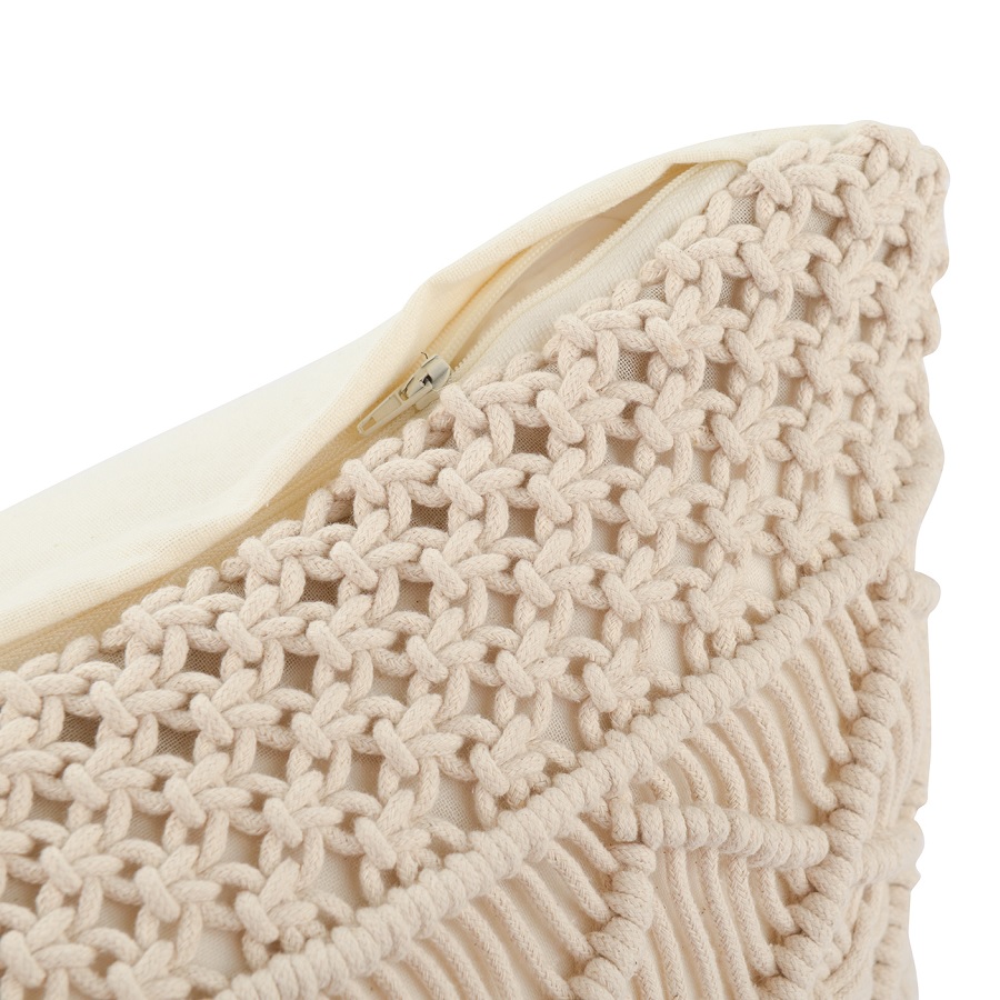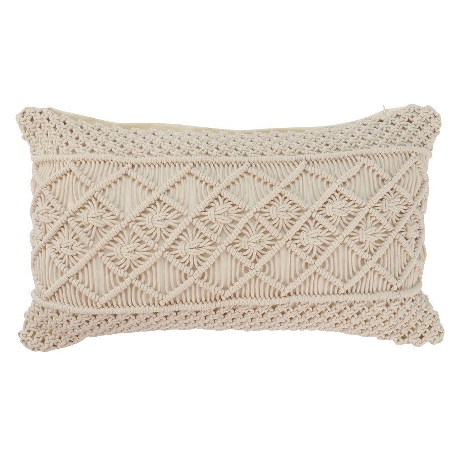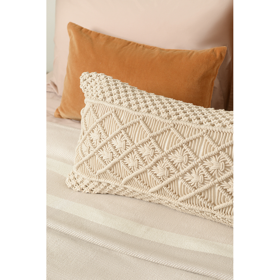 Чехол на подушку макраме светло-бежевого цвета из коллекции Ethnic, 35х60 см