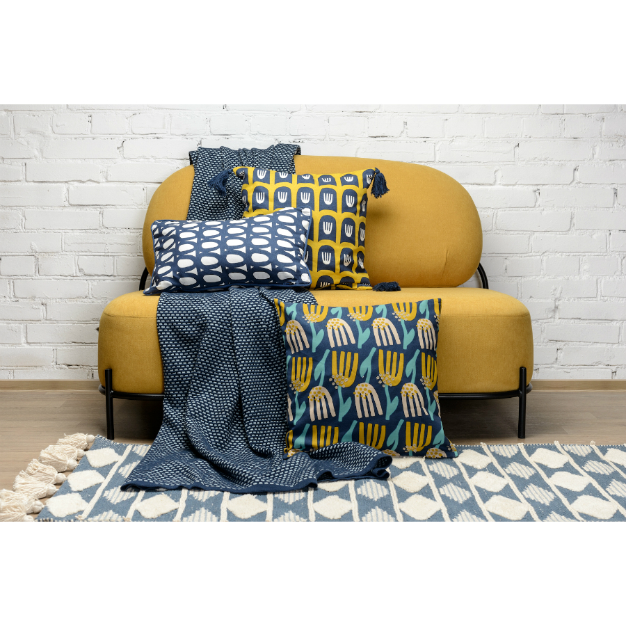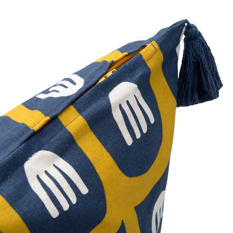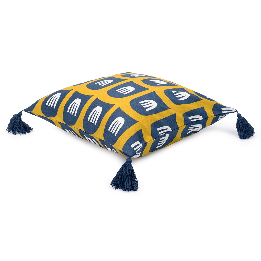 "Чехол для подушки с крупным двусторонним принтом Blossom time и пышными кисточками по бокам из коллекции Cuts&Pieces украсит интерьер в любом стиле: от красочного бохо до лаконичного лофта. Модель выполнена из мягкого гипоаллергенного хлопка, застежка – потайная молнию сбоку.