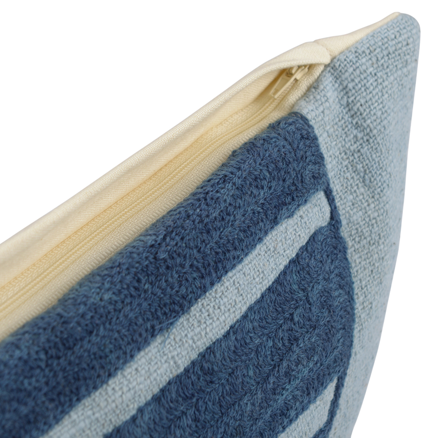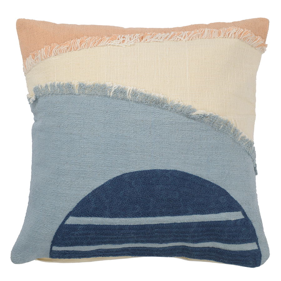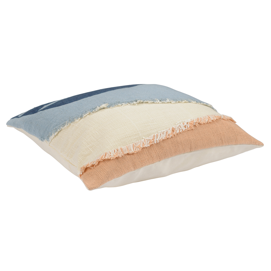 "Чехол на подушку с геометрическим принтом и бахромой из коллекции Ethnic станет ярким акцентом в любом интерьере. Изделие, выполненное из прочного и приятного на ощупь хлопка, притягивает взгляды интересным дизайном с этническим мотивом и разными фактурами. Сбоку – скрытая застёжка на молнию. Плотность ткани - 325GSM.
