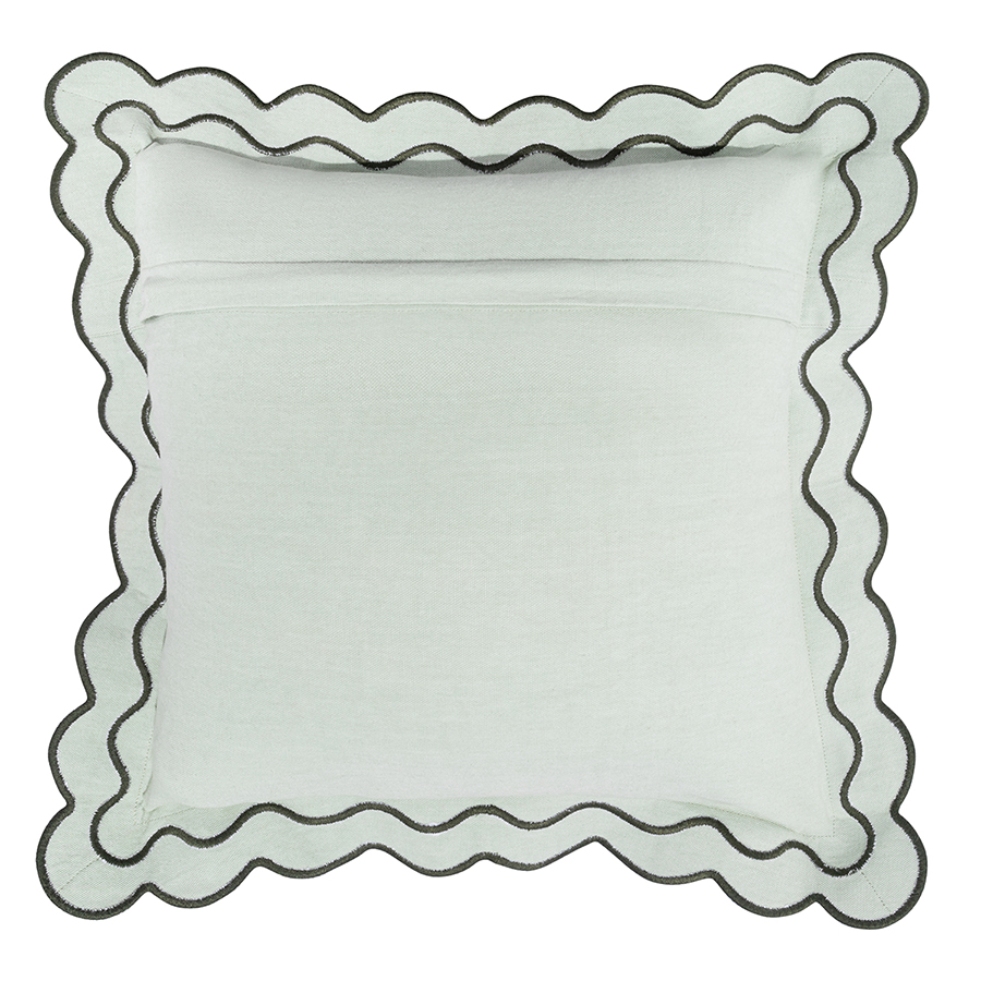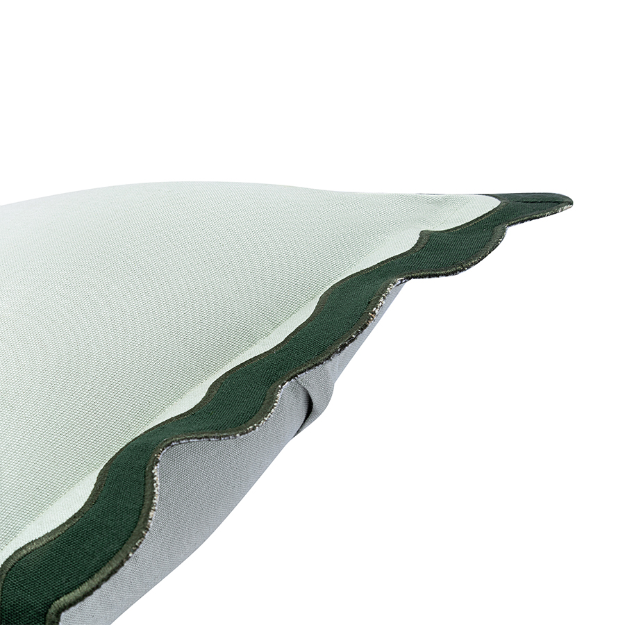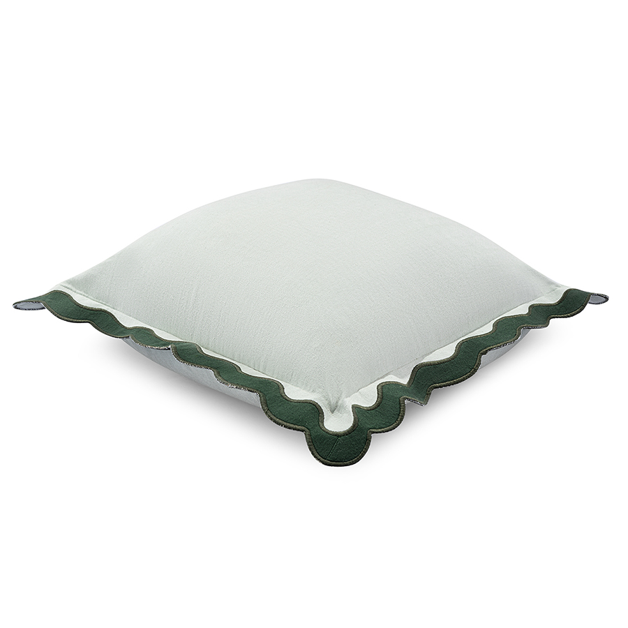 "Чехол на подушку с контрастным кантом зеленого цвета из коллекции Trendy Ruffles привнесет свежий акцент в оформление гостиной, спальни или зоны отдыха. Текстиль с волнистой отделкой, напоминающей изящные раковины морских гребешков, стал ярким элементом стиля Ар Деко – и сейчас возвращается в моду, появляясь в самых актуальных интерьерных решениях.