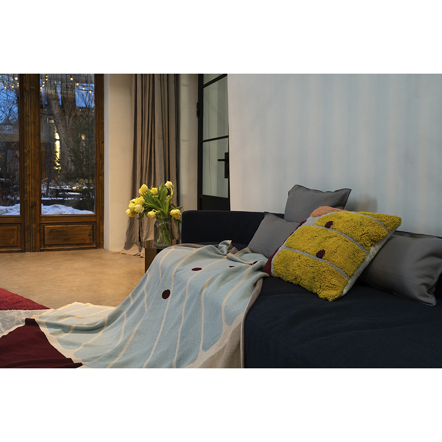 Декоративную подушку можно дополнить пледом с таким же принтом, а также другим текстилем из одноименной коллекции.