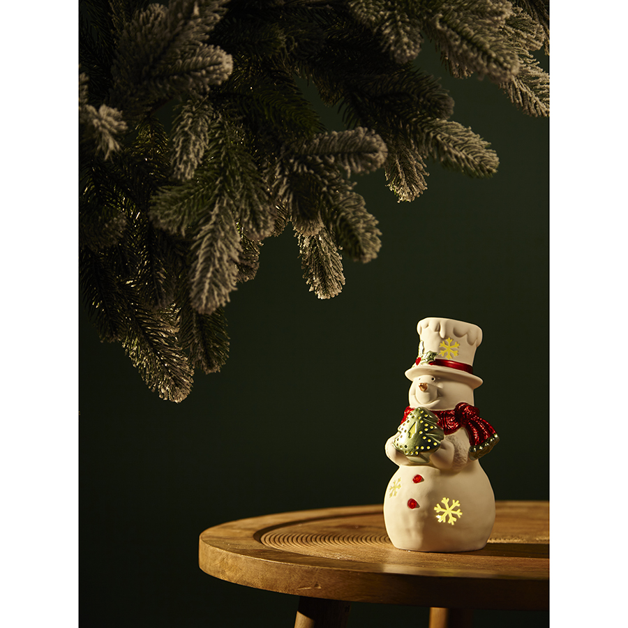 "Декор новогодний с подсветкой Classy Snowman из коллекции New Year Essential принесет с собой ощущение праздника и волшебства, а также поможет в создании уютной атмосферы в вашем доме. Этот милый Снеговик – настоящий хранитель новогоднего настроения, который напомнит о детских мечтах и заставит снова поверить в чудеса. Вы можете разместить его в любой из комнат, под ёлкой или украсить им праздничную композицию.