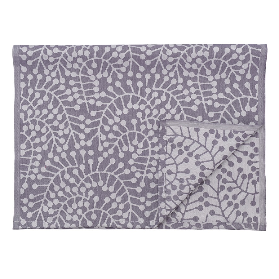 "Дорожка на стол из хлопка насыщенного фиолетово-серого цвета с жаккардовым рисунком Спелая смородина из коллекции Scandinavian touch внесет разнообразие в повседневную и неформальную праздничную сервировку. Изделие с авторским дизайном, разработанным одним из ведущих финских агентств, органично впишется в любой современный интерьер. Модель выполнена из плотного хлопка - прочного материала, который хорошо впитывает влагу и не деформируется после множества стирок.
