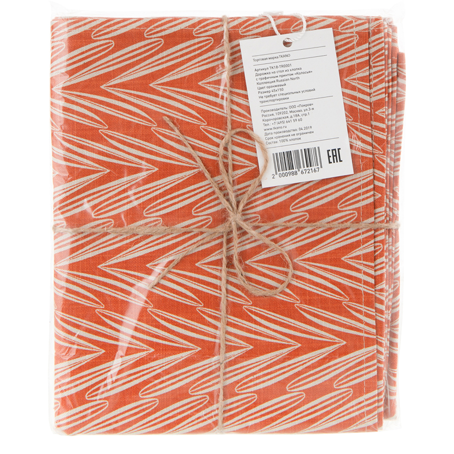 Дорожка на стол из хлопка с графичным принтом Колосья Russian North, 45х150 см