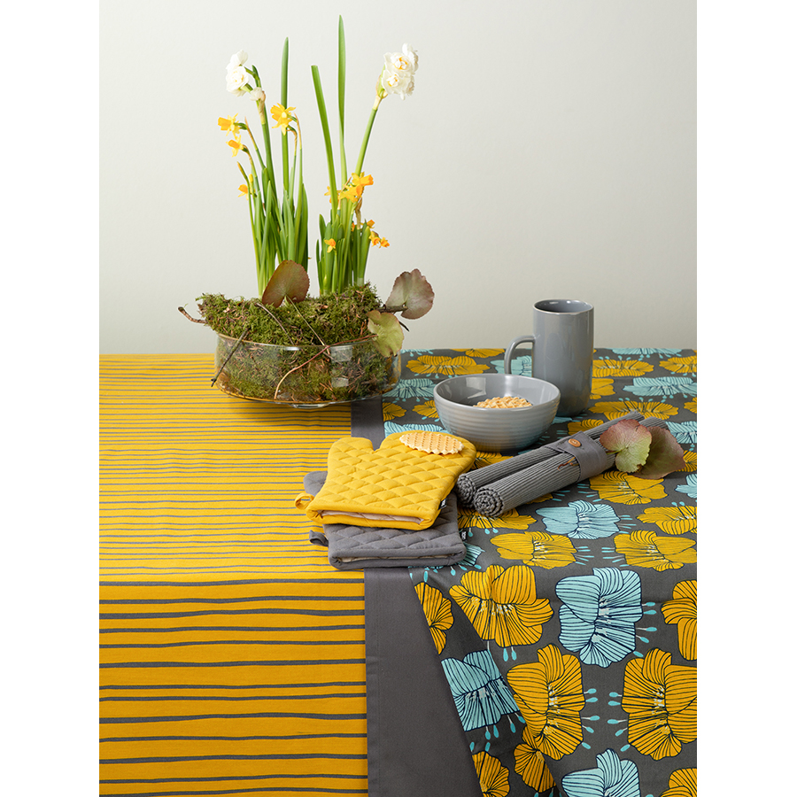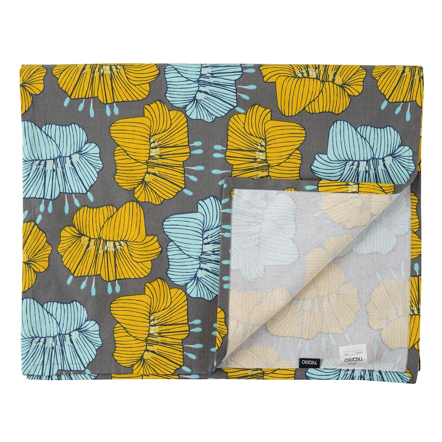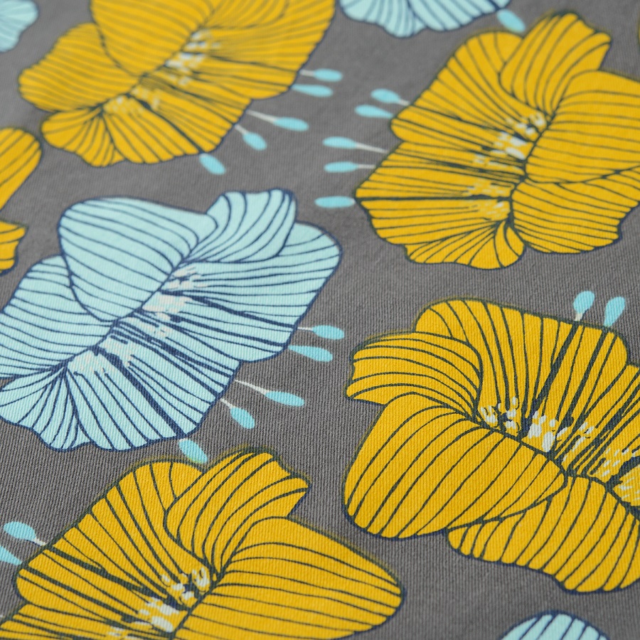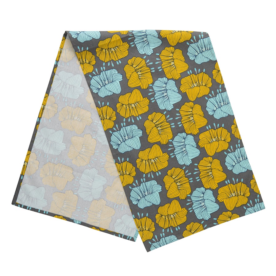 "Дорожка на стол из хлопка серого цвета с принтом Цветы из коллекции Prairie гармонично дополнит повседневную и праздничную сервировку. Дизайн с крупными цветами станет , ,ярким акцентом и гармонично впишется в любой современный стиль. Изделие из экологически чистого и приятного на ощупь материала будет выглядеть новым даже после множества стирок. Тип плетения: твил. Плотность материала - 215 GSM.