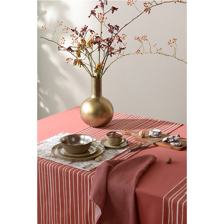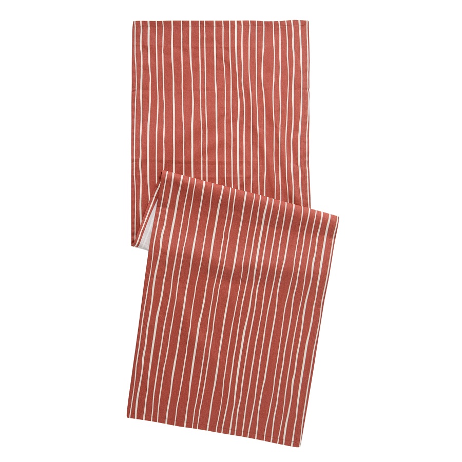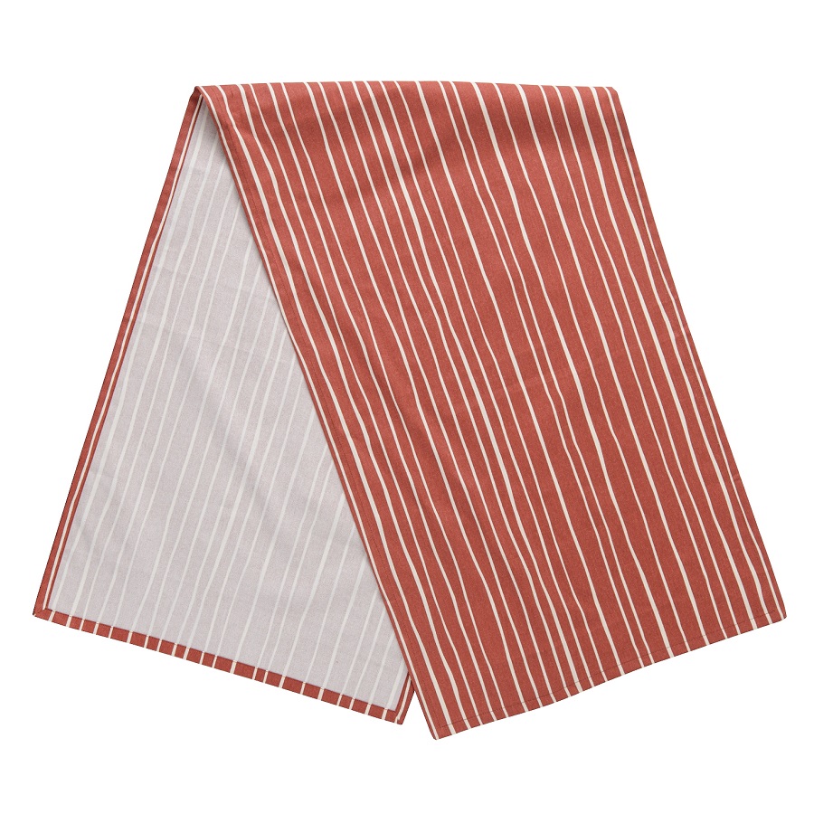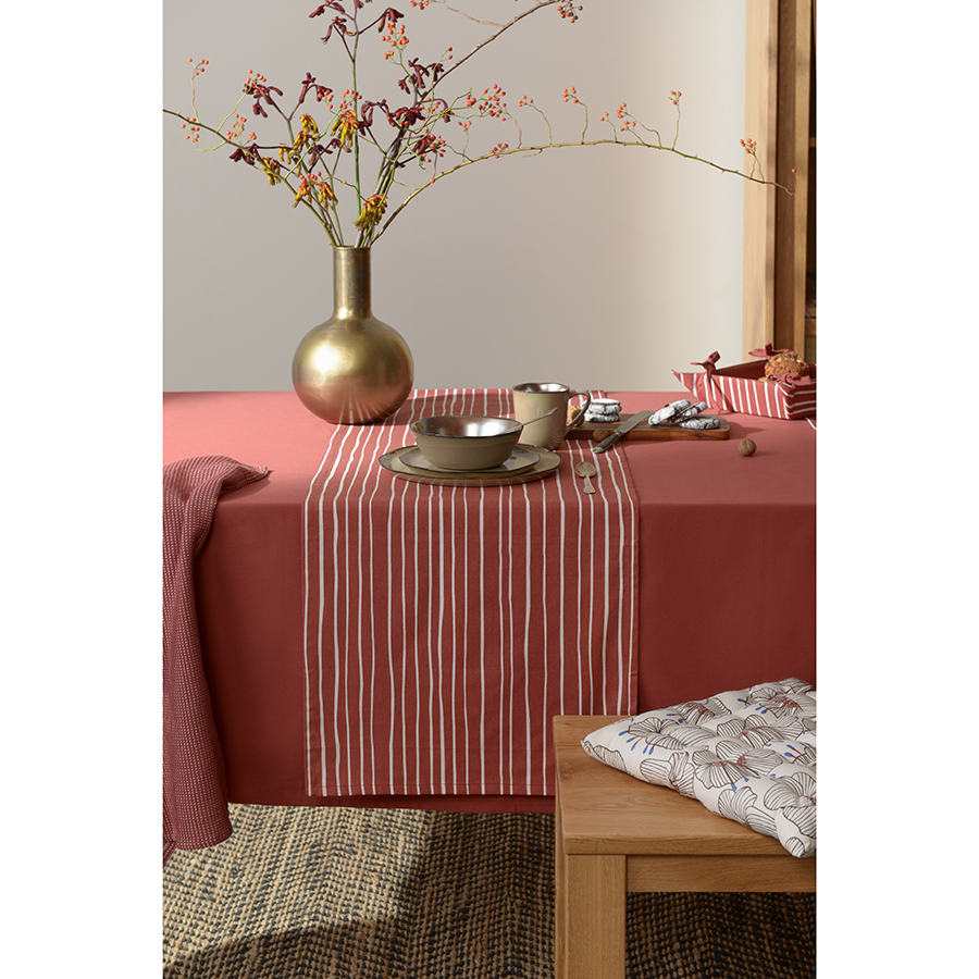 Дорожка на стол из хлопка терракотового цвета с принтом Полоски из коллекции Prairie, 45х150 см