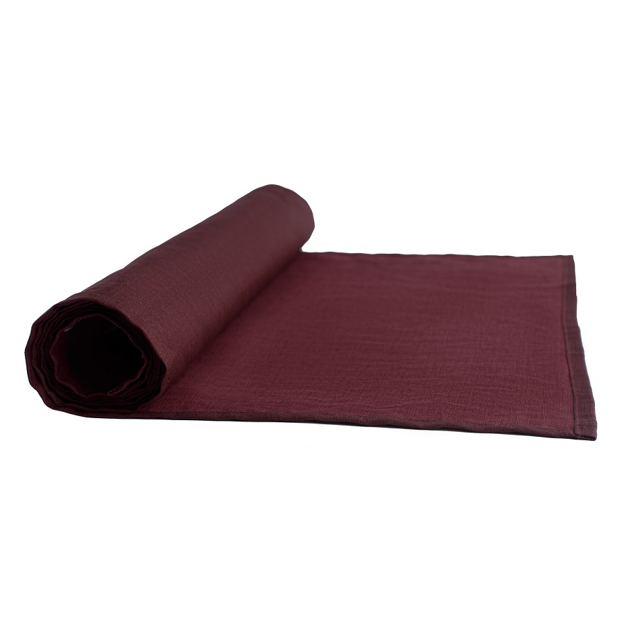 Дорожка на стол из умягченного льна с декоративной обработкой бордового цвета Essential, 45х150 см
