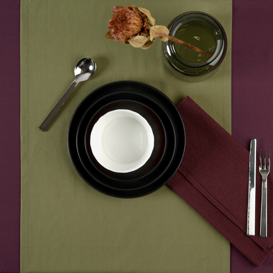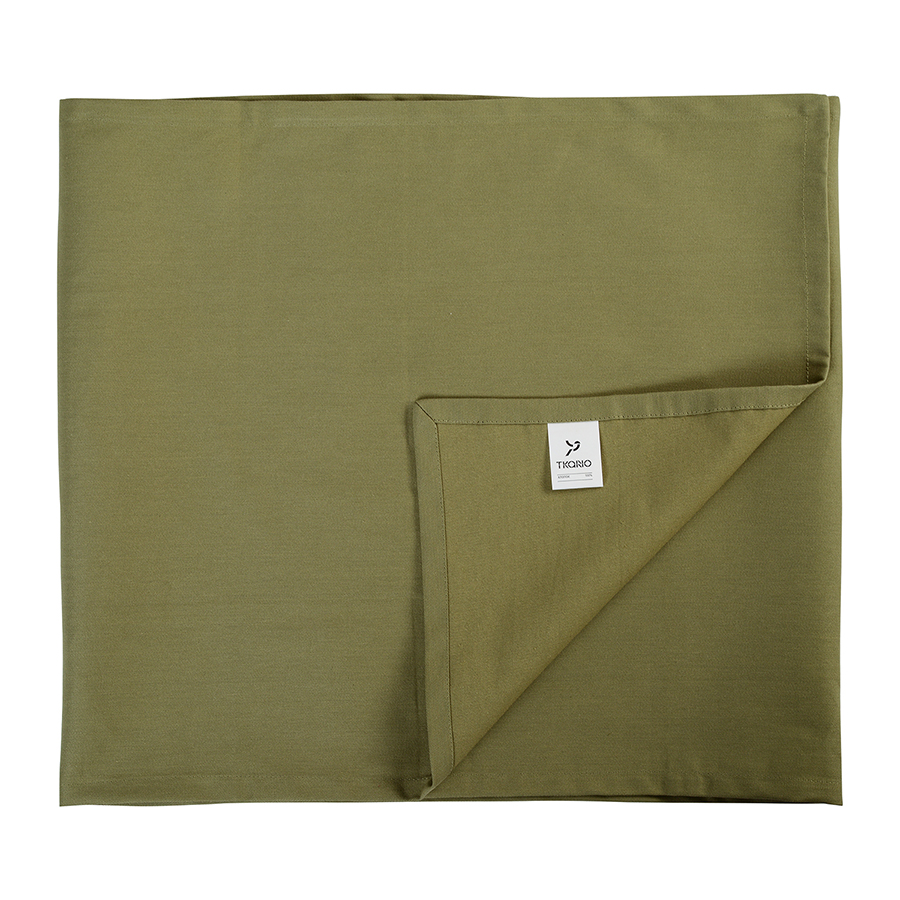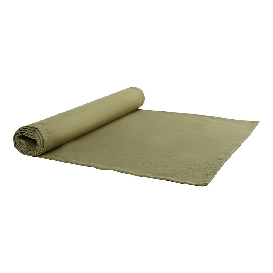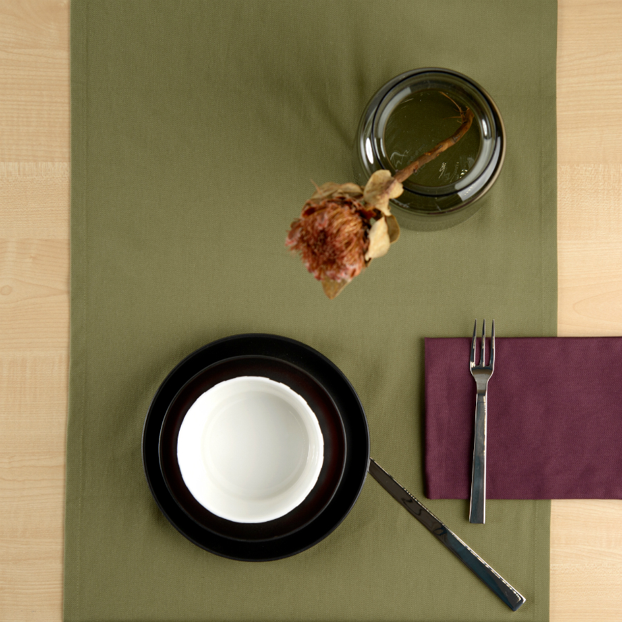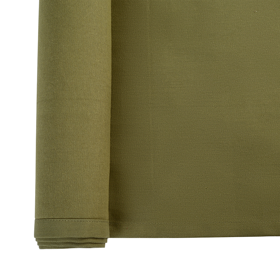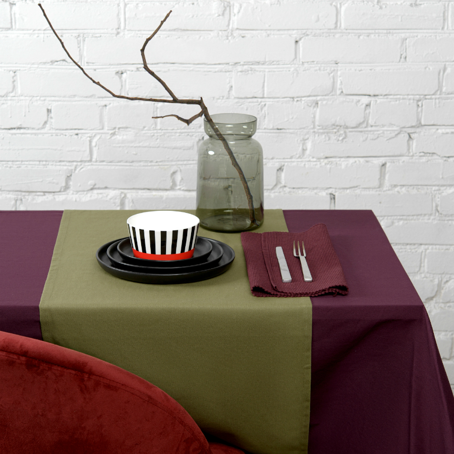 "Однотонная дорожка на стол выполнена из плотного длинноволокнистого хлопка. Приятный на ощупь материал будет выглядеть новым даже после множества стирок. Модель представлена в насыщенном оливковом цвете. Тип плетения: твил.
