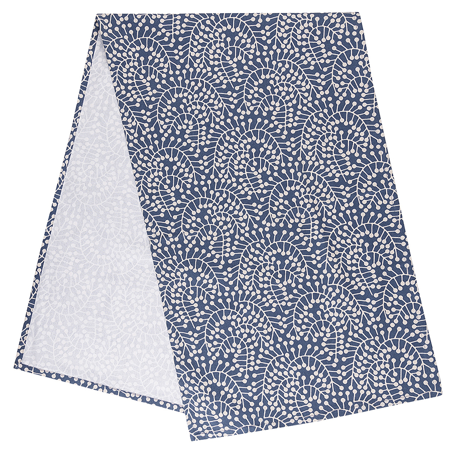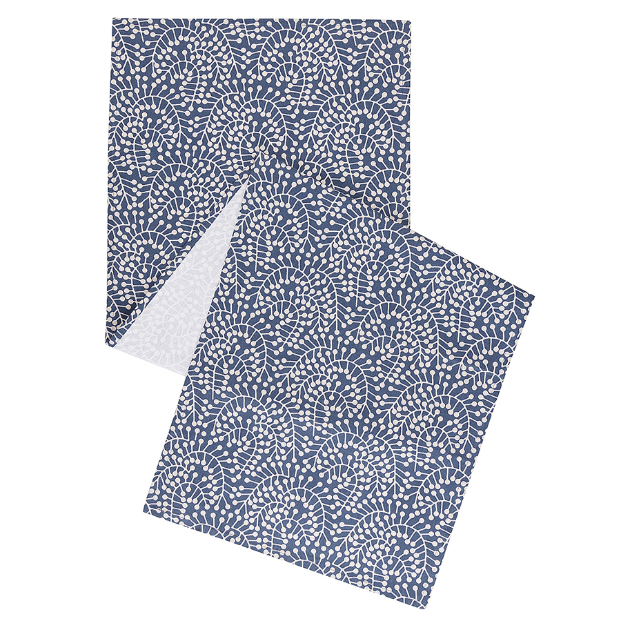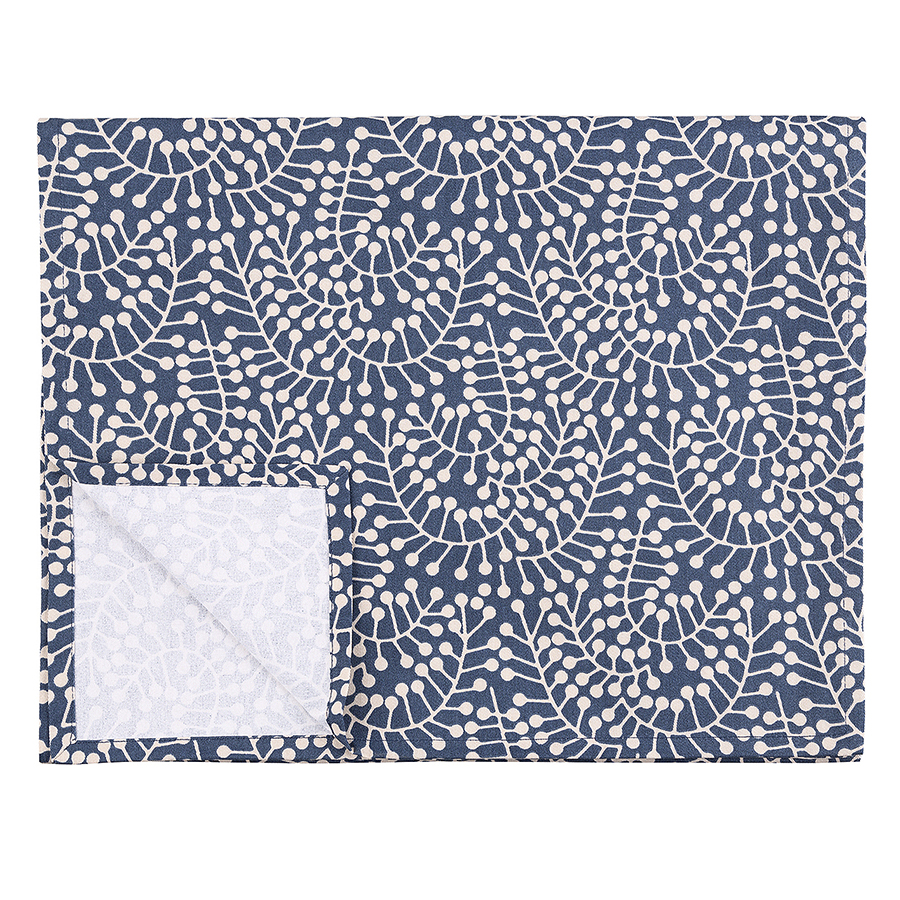 "Дорожка на стол темно-синего цвета с принтом Спелая Смородина из коллекции Scandinavian touch внесет разнообразие в повседневную и неформальную праздничную сервировку. Изделие с авторским дизайном, разработанным одним из ведущих финских агентств, органично впишется в любой современный интерьер. Модель выполнена из плотного хлопка - прочного материала, который хорошо впитывает влагу и не деформируется после множества стирок.