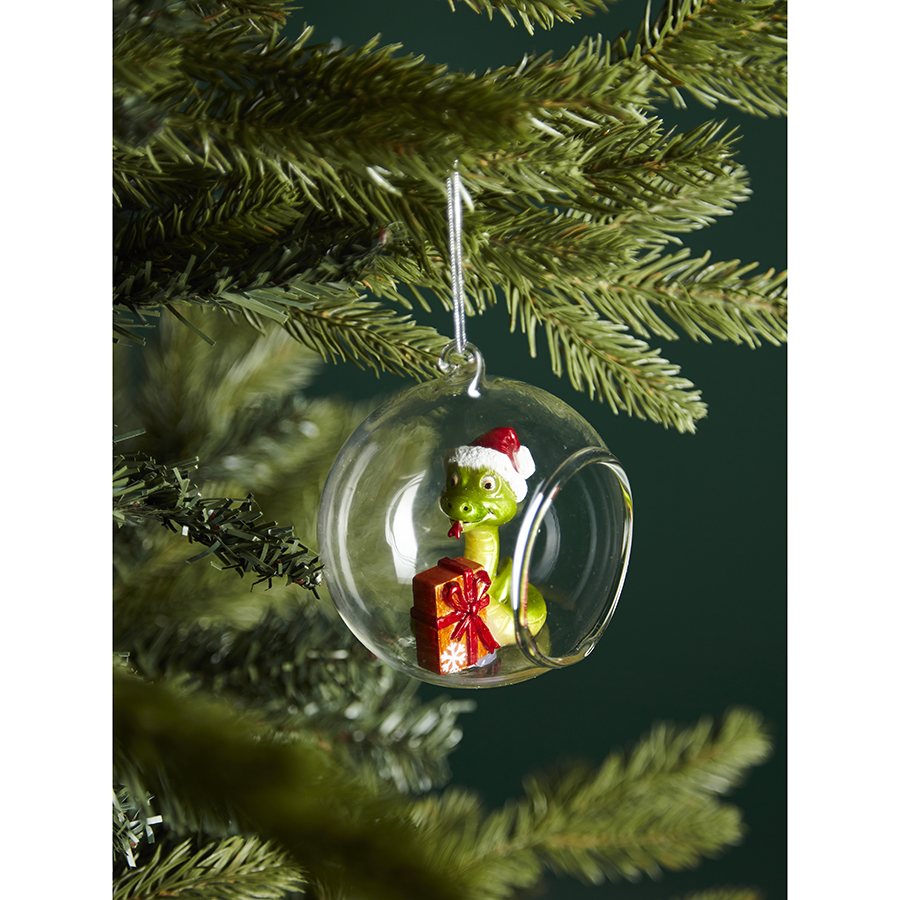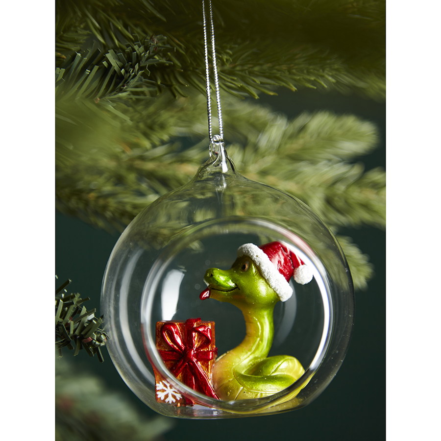 "Представьте себе волшебный лес, где на ветках каждого дерева сверкают стеклянные сферы, внутри которых живут удивительные создания. В одном из таких шаров поселилась веселая змейка – символ года, приносящий удачу и мудрость. Украшение Festive Snake из коллекции New Year Essential создаст в доме праздничную атмосферу и напомнит о том, что чудеса где-то рядом, в них нужно только поверить!