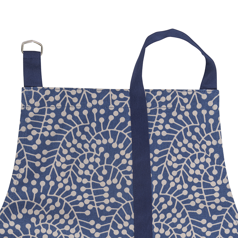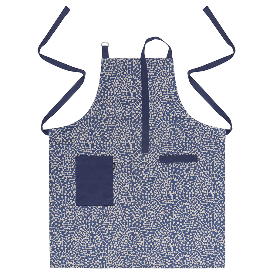 "Фартук из хлопка темно-синего цвета с принтом Спелая Смородина из коллекции Scandinavian touch защитит одежду во время готовки и работы на кухне. Модель с накладным карманом и клапаном для кухонного полотенца, бретель нагрудника регулируется по длине. Стильный фартук с растительным принтом органично впишется в интерьер любой современной кухни и будет отлично сочетаться с другим кухонным текстилем из этой же серии. Материал – экологически чистый хлопок.