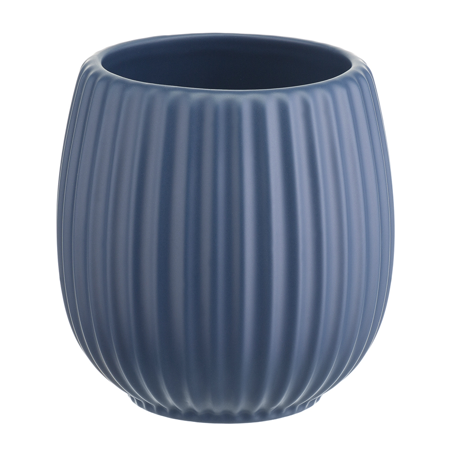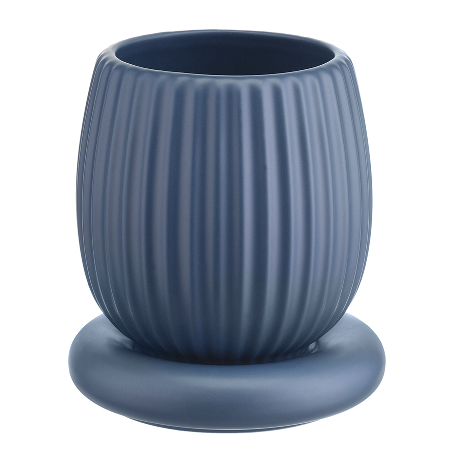 "Горшок цветочный темно-синего цвета из коллекции Edge хорошо подойдет для небольших комнатных растений и поможет привнести природу в дом. Изделие простой округлой формы с фактурными гранями отлично сочетается со свечами и вазами из этой же коллекции, позволяя создавать интересные интерьерные композиции. Горшок выполнен из доломита, устойчивого к сколам, легкого и экологически чистого материала, снаружи и внутри покрыт матовой глазурью, имеет дренажное отверстие в нижней части. Подстановочная тарелка входит в комплект поставки.