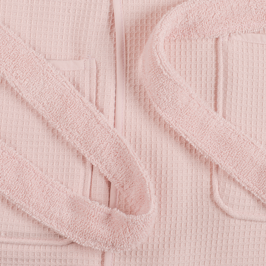 "Халат банный из чесаного хлопка цвета пыльной розы из коллекции Essential подарит ощущение нежности и чувство комфорта после душа или ванны и придётся по душе ценителям натуральных материалов. Изделие выполнено из хлопка повышенной гигроскопичности Aqua Fibro, созданного по специальной технологии скручивания. Воздушные микроотверстия между волокнами и внутри нитей придают ткани объем и отличные впитывающие свойства. Внешняя сторона халата имеет вафельную фактуру, а внутренняя – махровую. Халат отличается особенной износостойкостью, хорошо держит форму и сохраняет качественные свойства на протяжении долгого времени. Модель с шалевым воротником дополнена двумя накладными карманами по бокам.