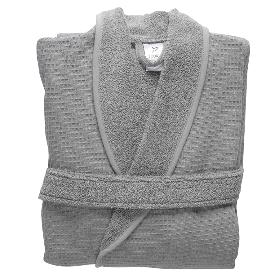 Халат банный из чесаного хлопка серого цвета из коллекции Essential, размер M