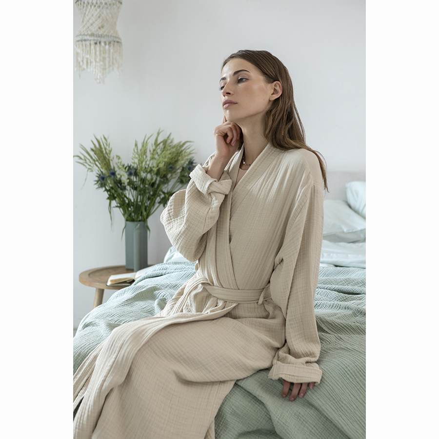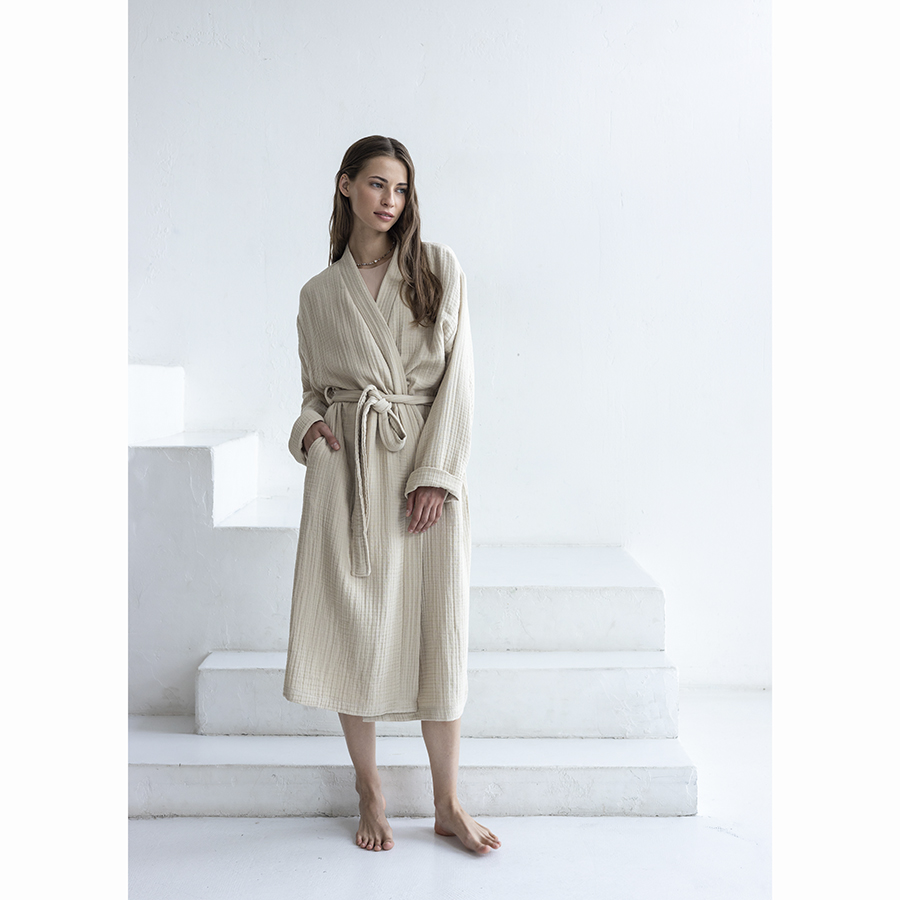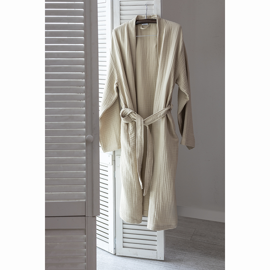 Халат из многослойного муслина бежевого цвета из коллекции Essential, размер L, Tkano