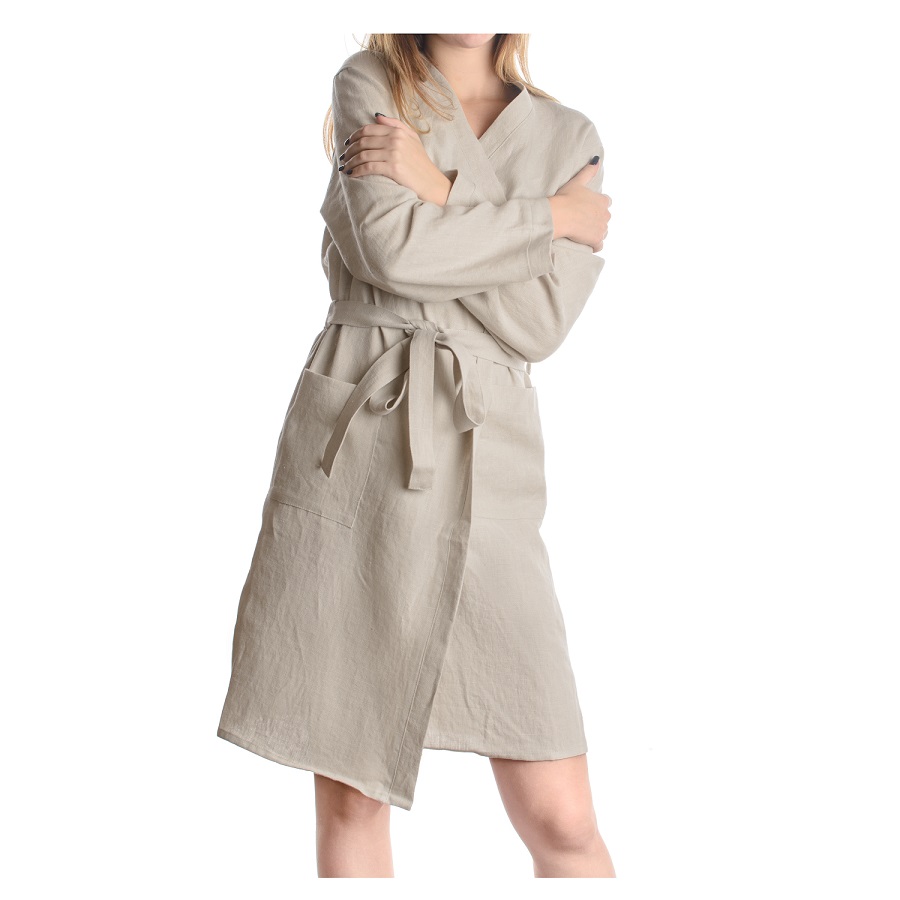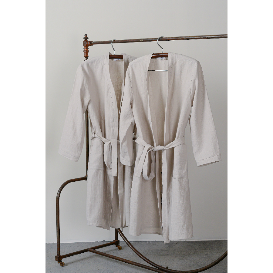 Халат из умягченного льна бежевого цвета Essential S