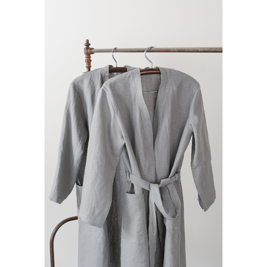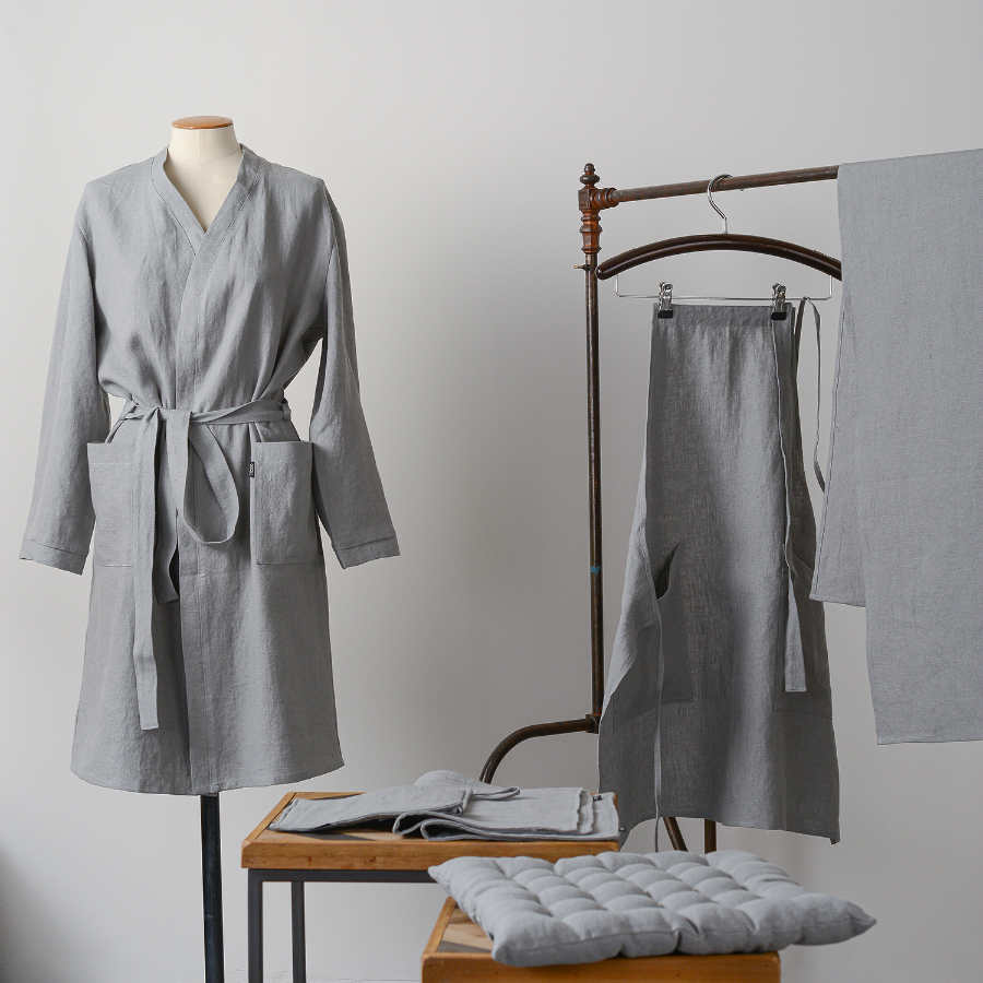 "Халат из умягченного льна подарит ощущение нежности и уюта после водных процедур. Приятное к телу изделие отличается высокой гигроскопичностью: легкий и при этом прочный лен хорошо впитывает влагу и пропускает воздух. Банный аксессуар обязательно понравится тем, кто заботится о своем комфорте и ценит качественные ткани. Изделие с двумя накладными карманами фиксируется длинным поясом в тон. Плотность ткани - 280GSM.