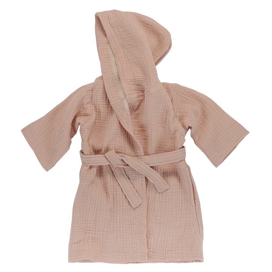 "Халат из жатого хлопка цвета пыльной розы из коллекции Essential лаконичного дизайна и нейтральной расцветки подойдет и мальчику, и девочке. Изделие с капюшоном и с удобным запахом фиксируется на талии широким поясом. , ,