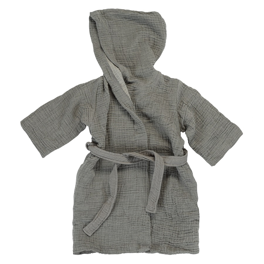 "Халат из жатого хлопка серого цвета из коллекции Essential лаконичного дизайна и нейтральной расцветки подойдет и мальчику, и девочке. Изделие с капюшоном и с удобным запахом фиксируется на талии широким поясом. , ,
