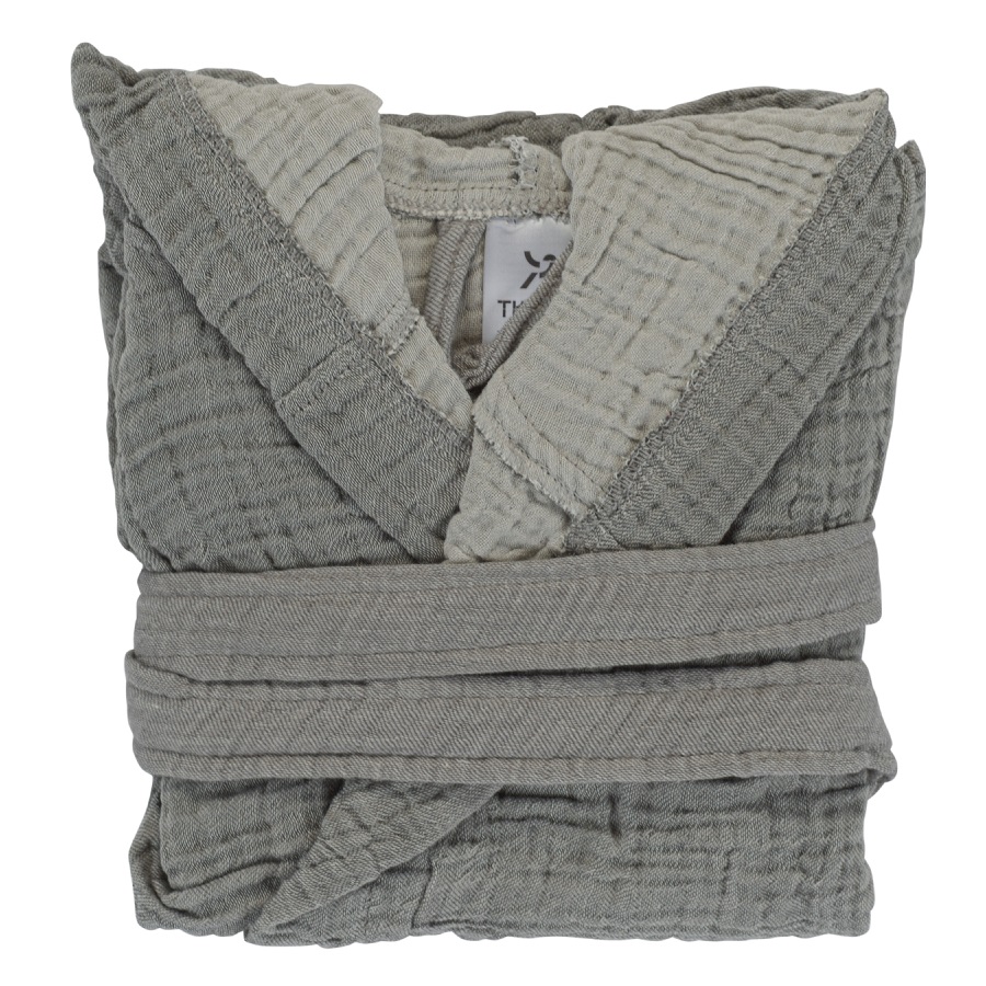 Халат из жатого хлопка серого цвета из коллекции Essential 3-4Y
