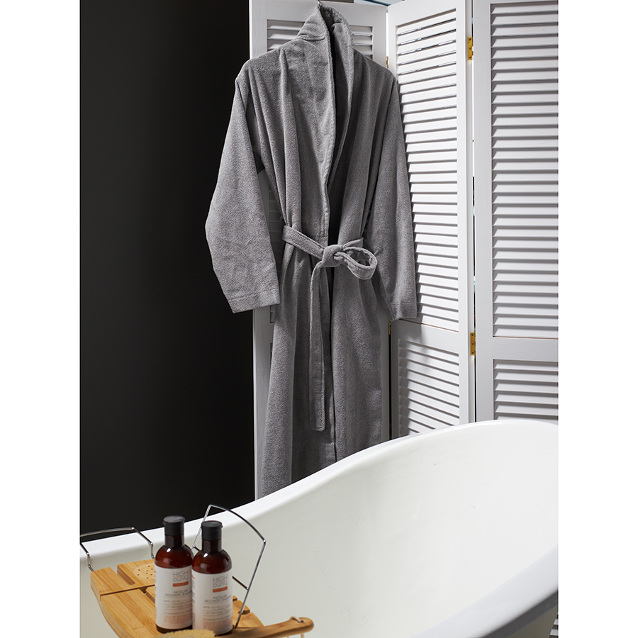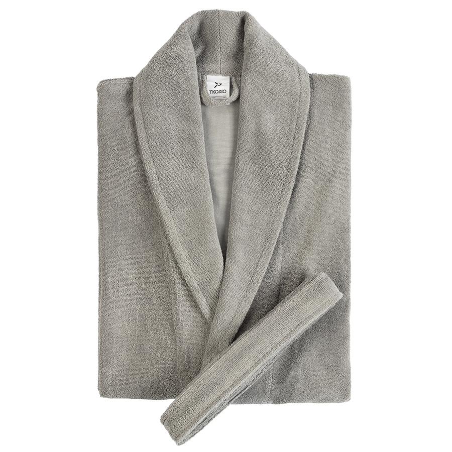 Халат махровый из чесаного хлопка серого цвета из коллекции Essential, размер XL, Tkano