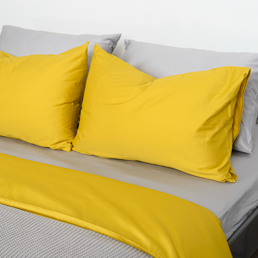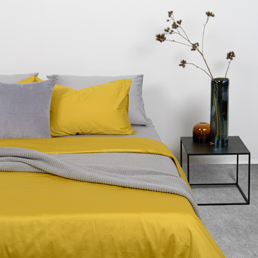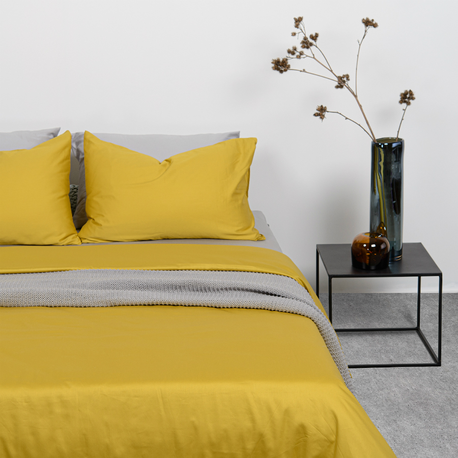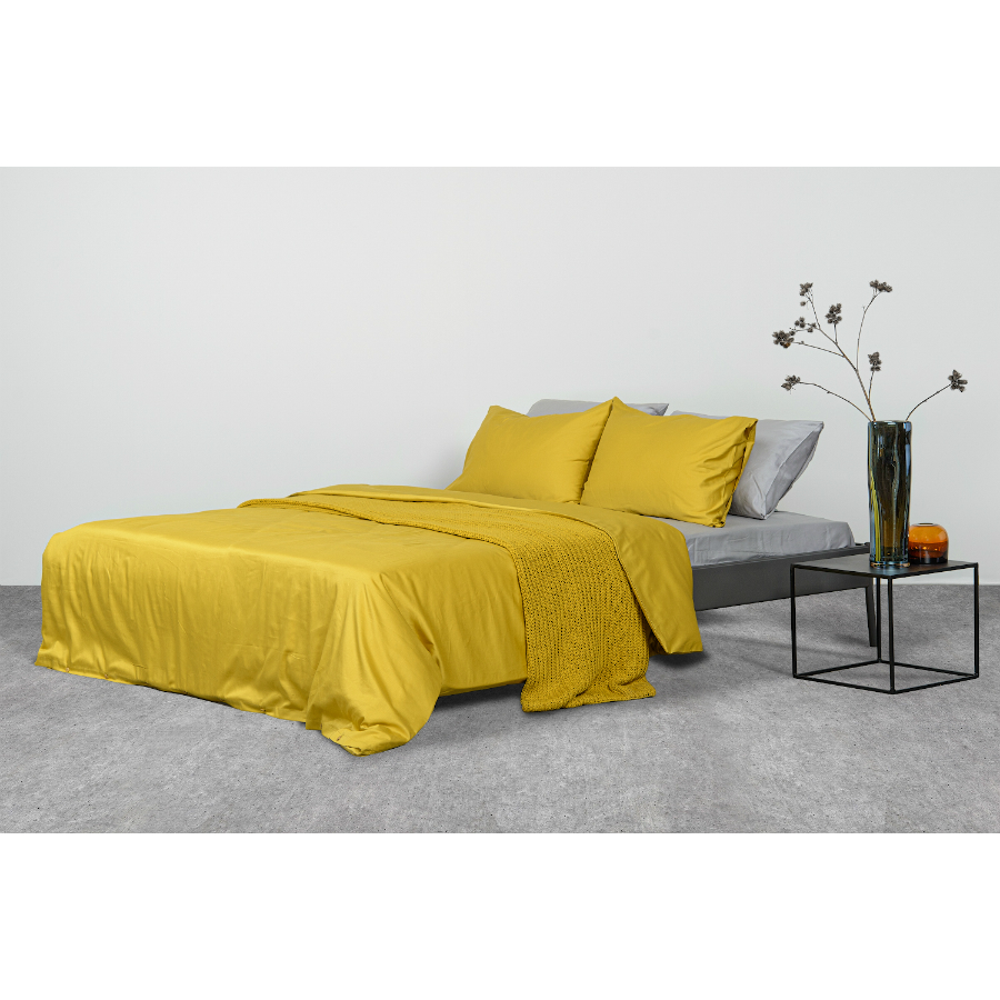 Комплект постельного белья двуспальный из сатина горчичного цвета из коллекции Essential