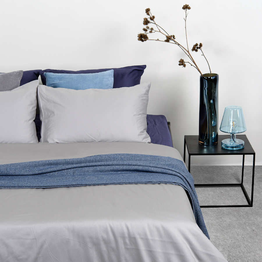 Комплект постельного белья двуспальный из сатина светло-серого цвета из коллекции Essential