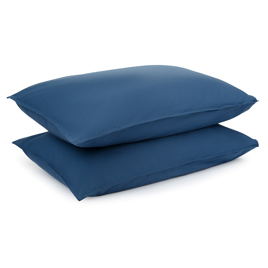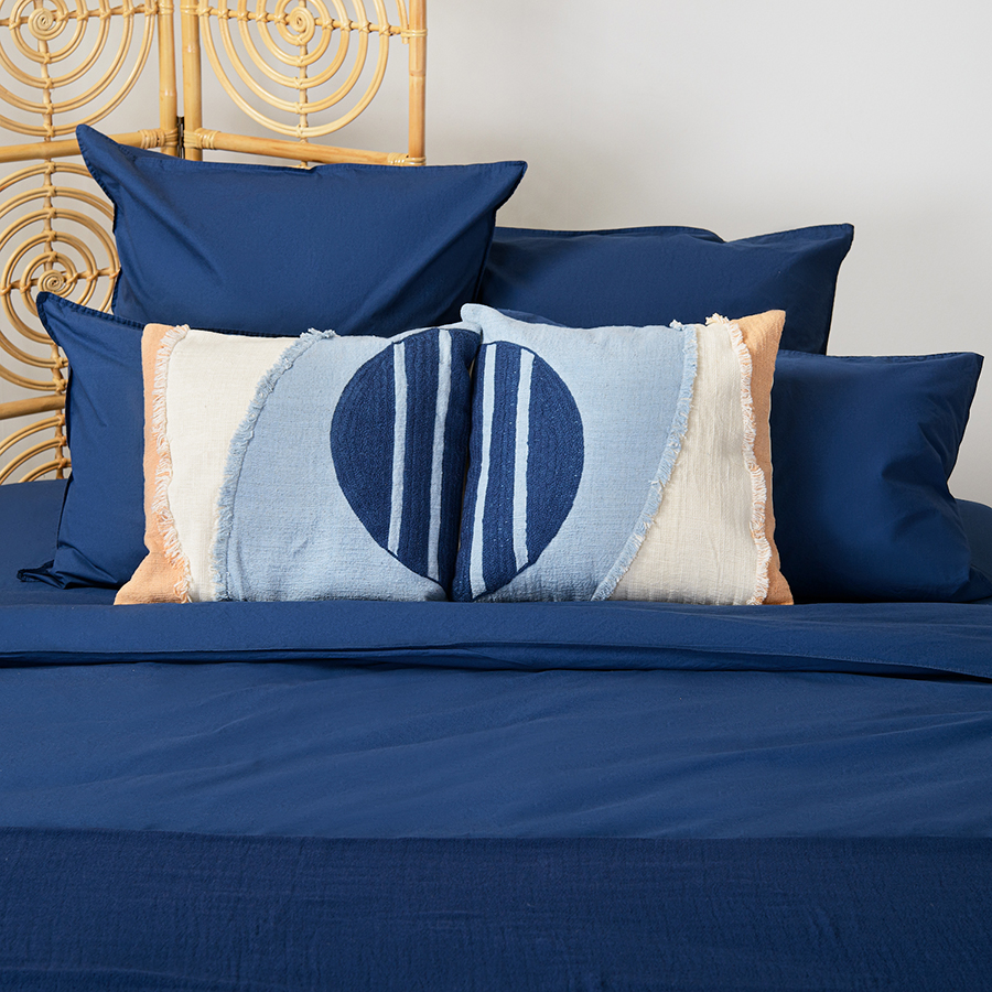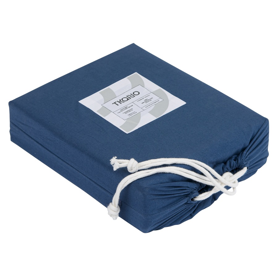 Комплект постельного белья двуспальный темно-синего цвета из органического стираного хлопка из коллекции Essential