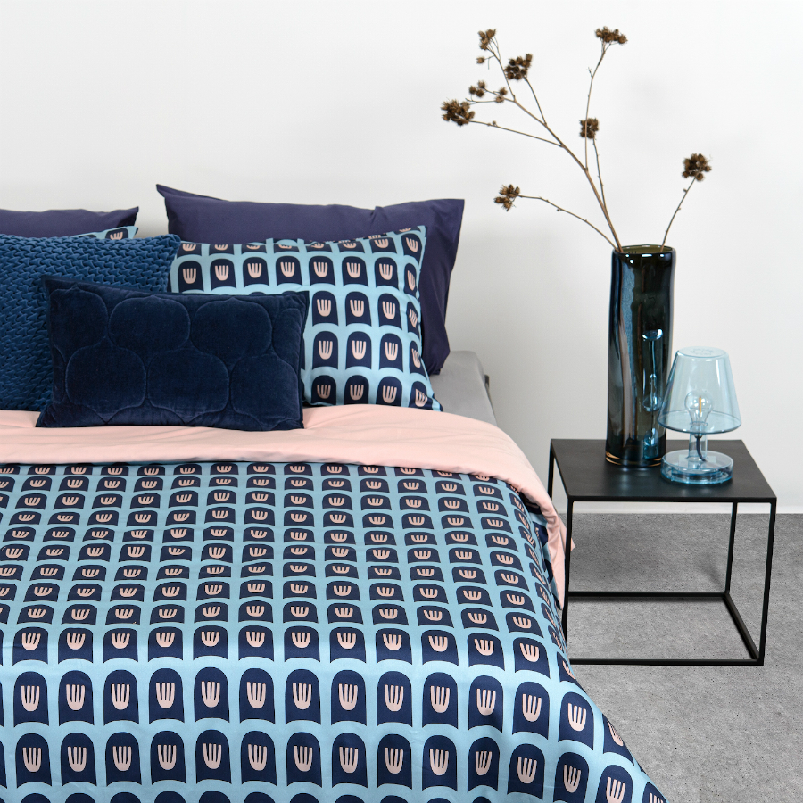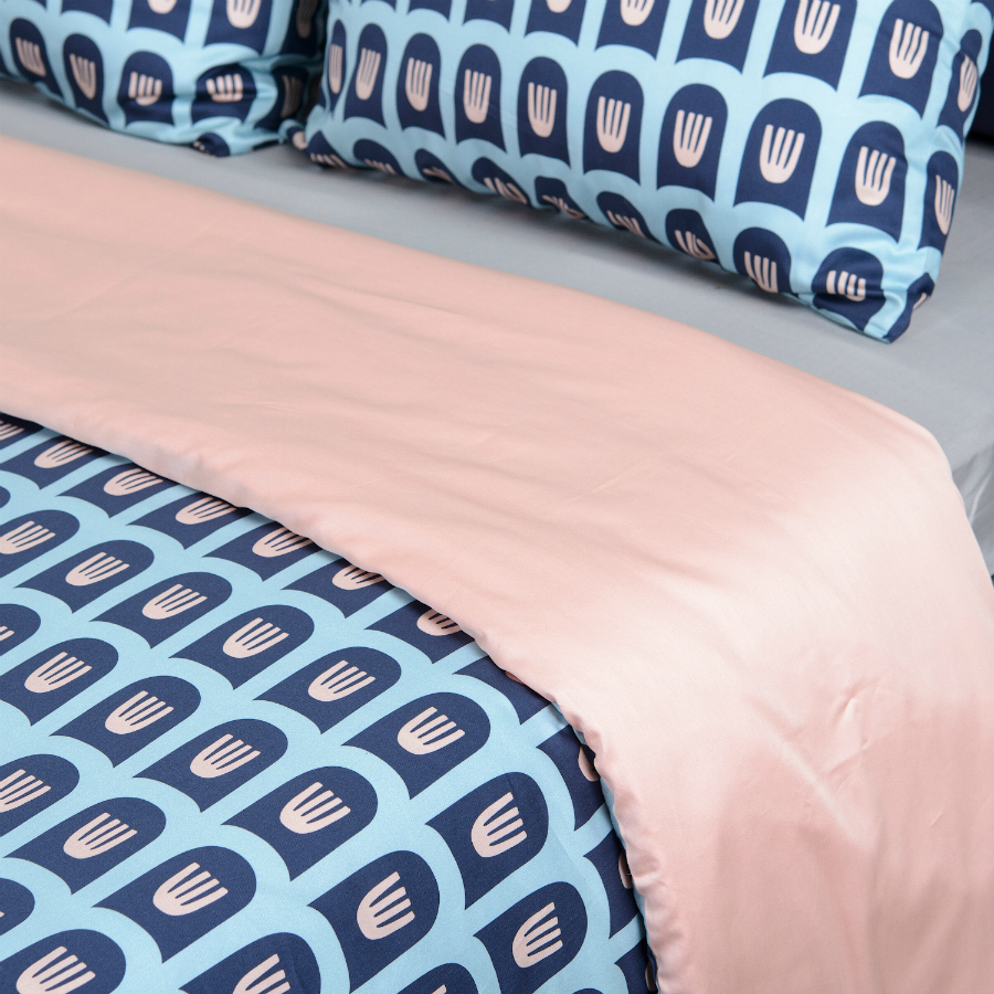 Комплект постельного белья двусторонний из сатина розового и голубого цветов с принтом Blossom time из коллекции Cuts&Pieces
