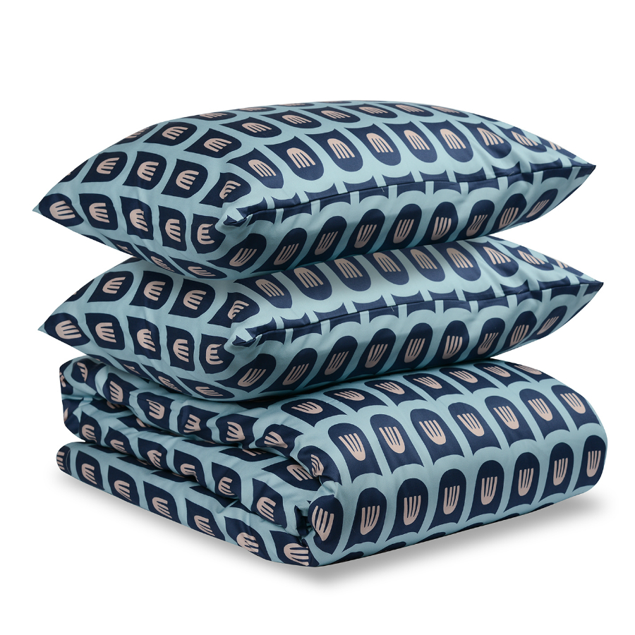 "Двусторонний комплект постельного белья из сатина c принтом ",Blossom time", из коллекции Cuts&Pieces станет ярким акцентом в интерьере спальни. Одна сторона розового цвета, а вторая контрастная — нежно голубого. Прочный хлопковый материал не теряет яркость цвета и гладкость даже после множества стирок. Сатин плотностью 210 ТС подарит ощущение комфорта и нежности во время сна.