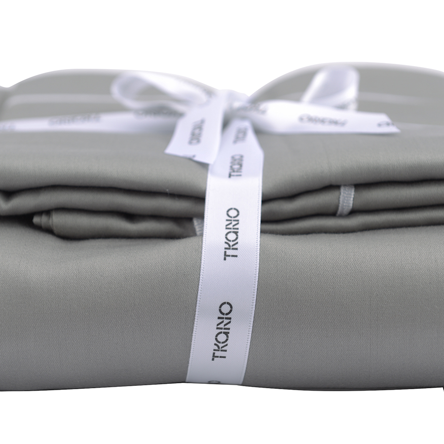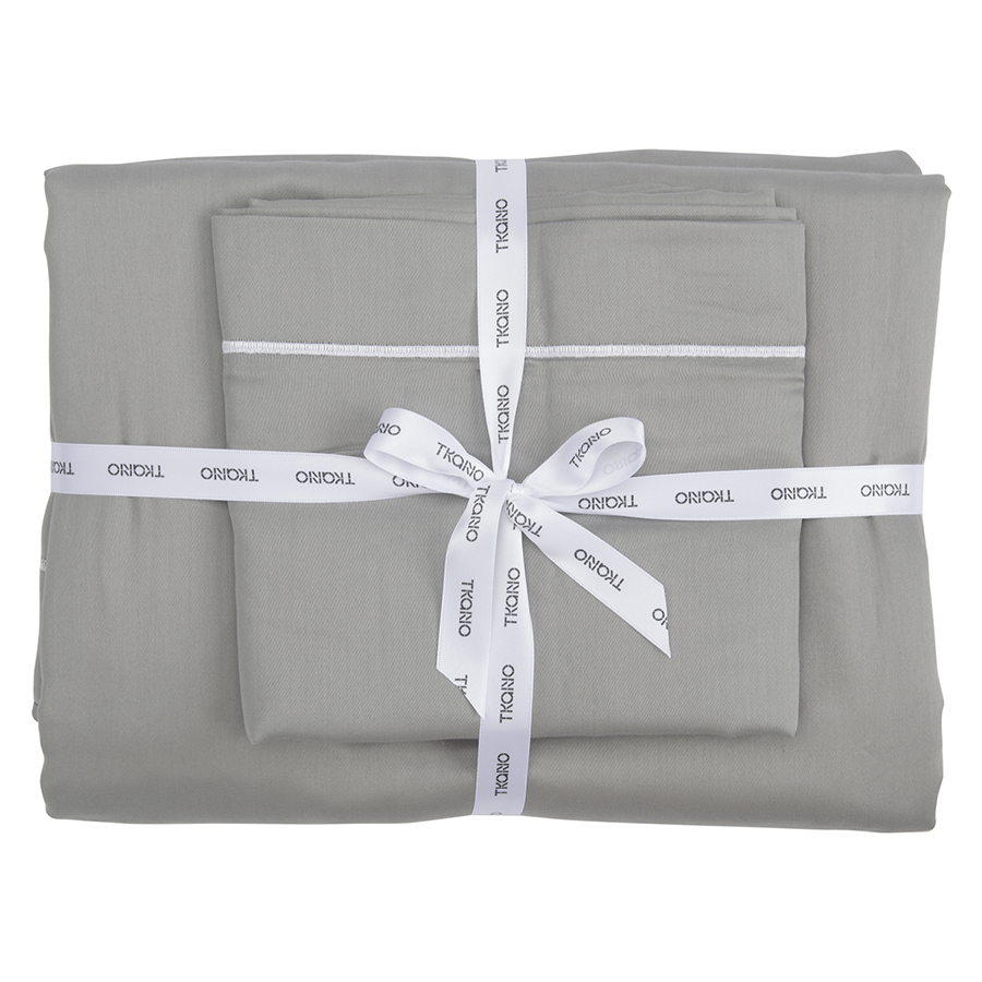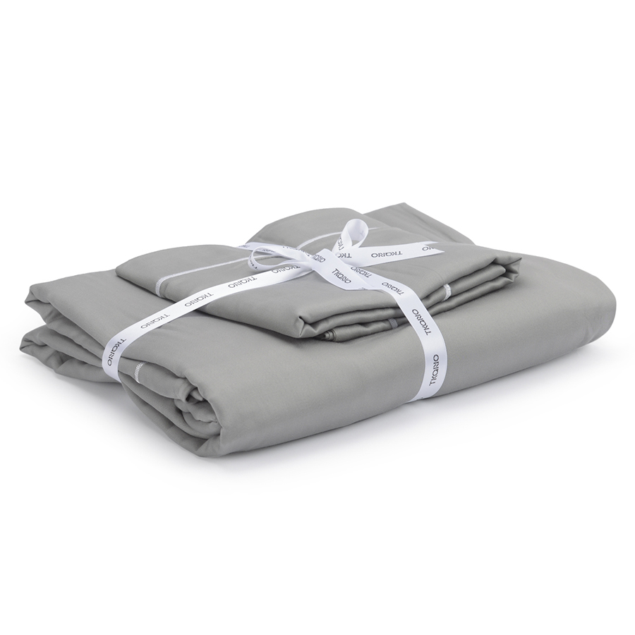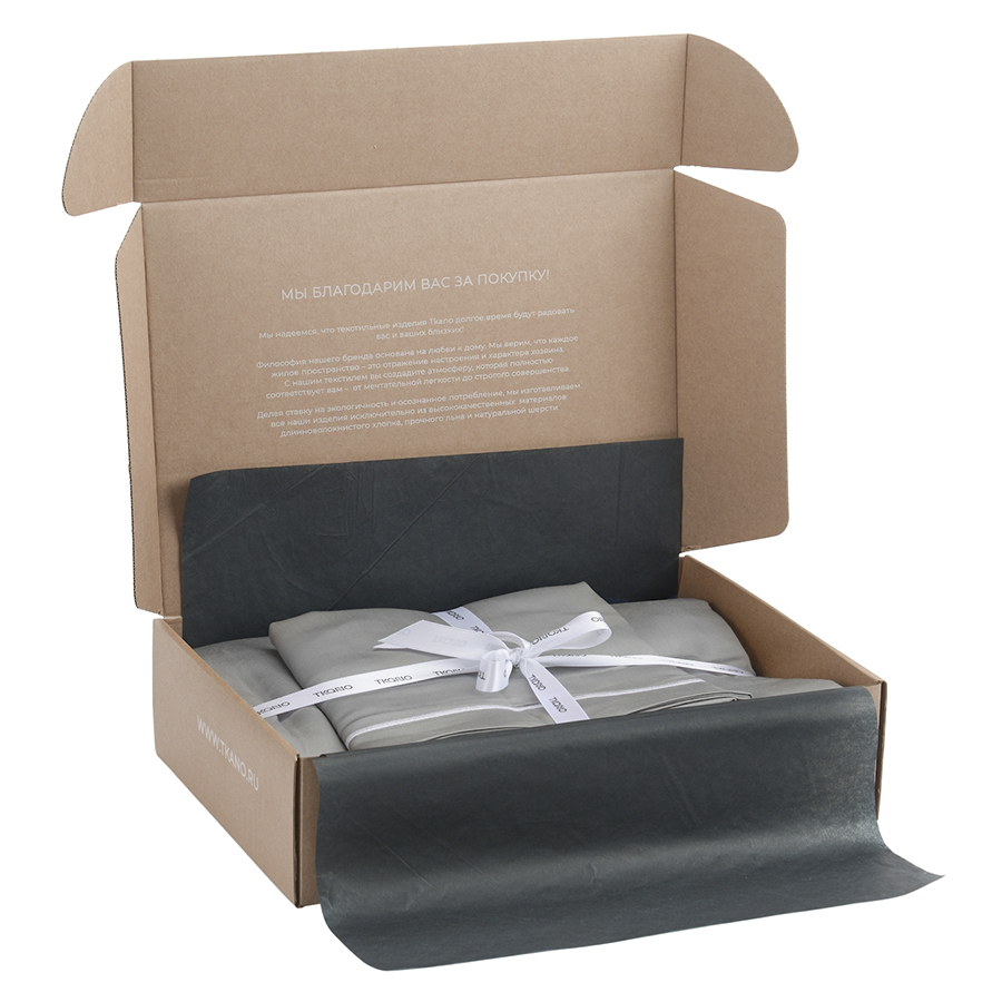 "Полноценный комплект белья из сатина плотностью в 300ТС. Приглушенный серый оттенок прекрасно подойдет к любому интерьеру, а натуральный 100%, египетский хлопок порадует прочностью и мягкостью. Набор из наволочек, пододеяльника и простыни упакован в оригинальный крафтовый бокс и станет отличным готовым подарком.