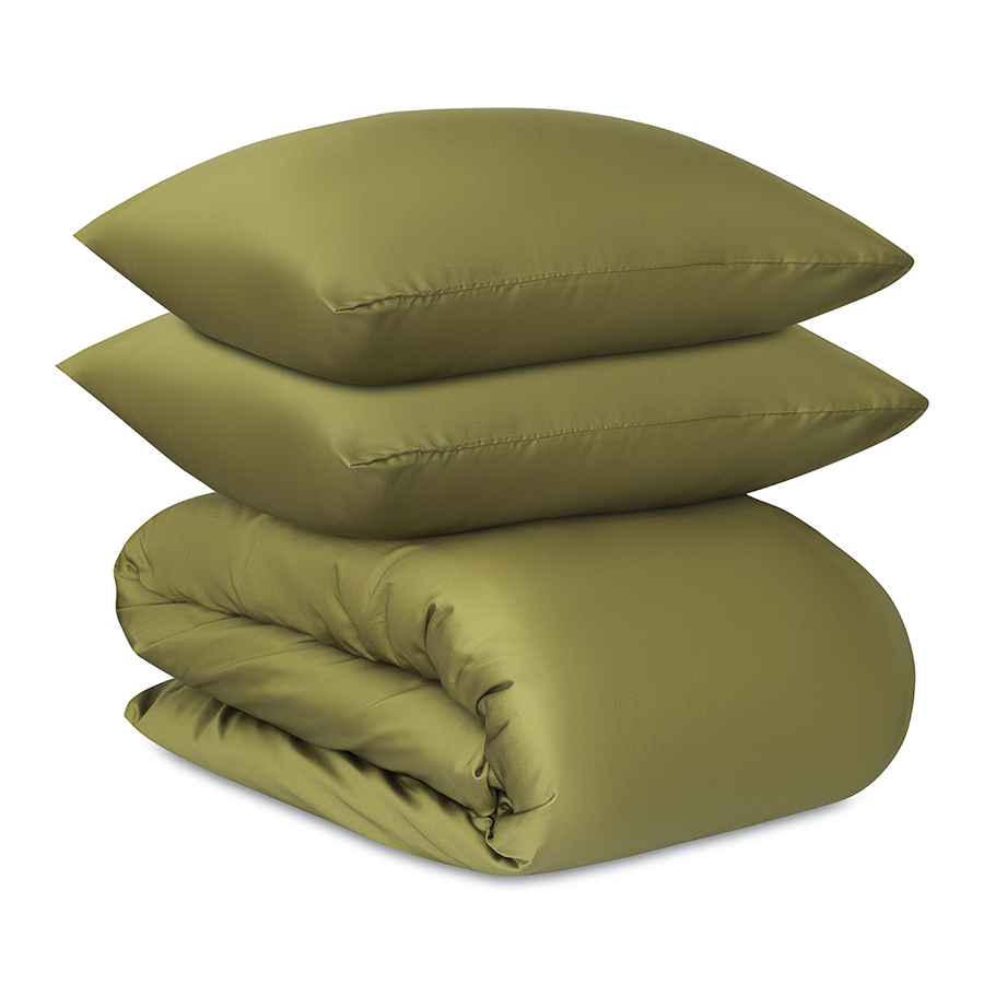 Комплект постельного белья из премиального сатина оливкового цвета из коллекции Essential, 150х200 см, Tkano