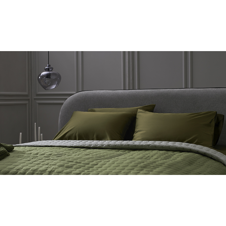 "Комплект постельного белья оливкового цвета из коллекции Essential подчеркнет ваш изысканный вкус и любовь к натуральным материалам. Представленные в комплекте наволочки и пододеяльник из премиального сатина сделают любую спальню более стильной, современной, обеспечат уют и комфорт во время отдыха и сна в любое время года.