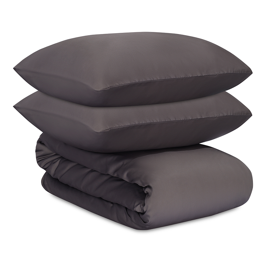 Комплект постельного белья из премиального сатина темно-серого цвета из коллекции Essential, 150х200 см, Tkano