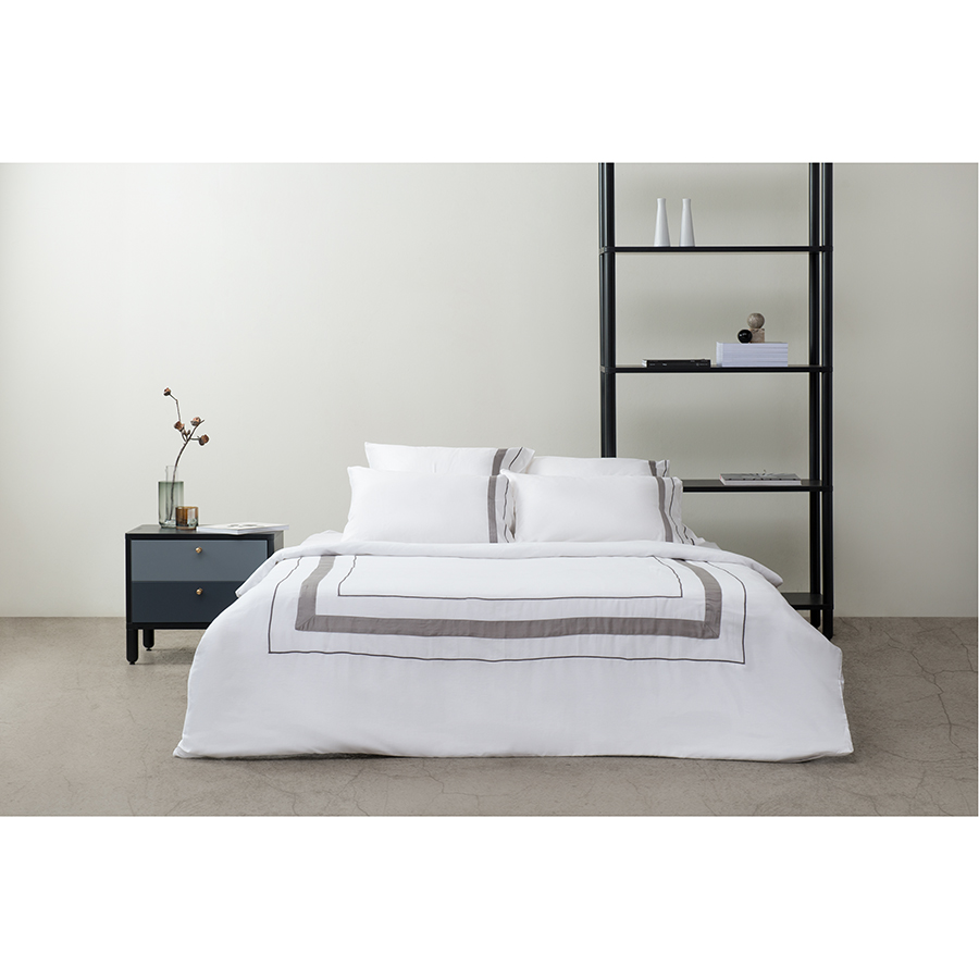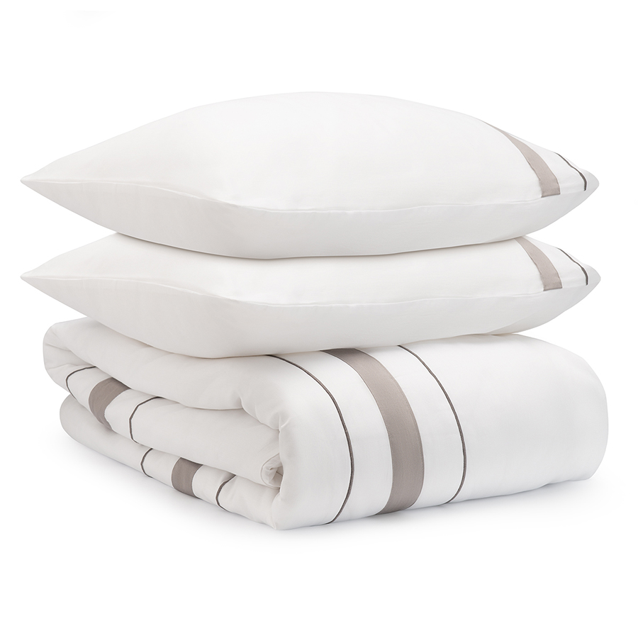 Комплект постельного белья из сатина белого цвета с серым кантом из коллекции Essential, 150х200 см