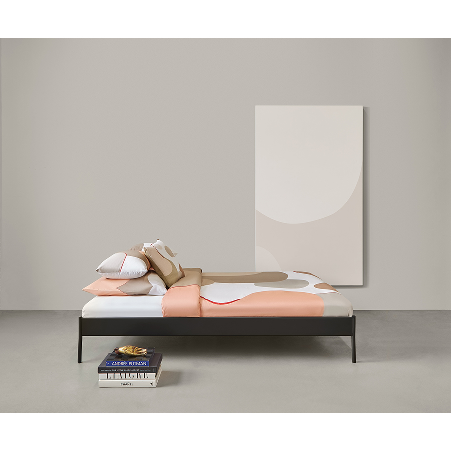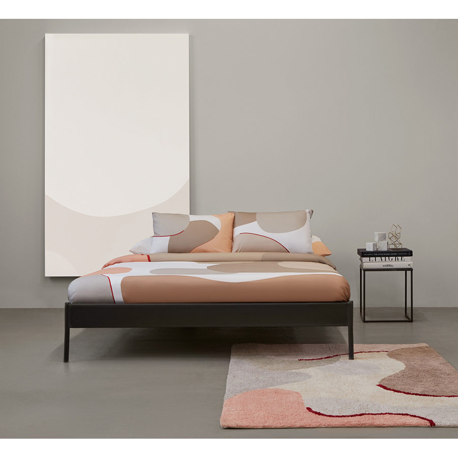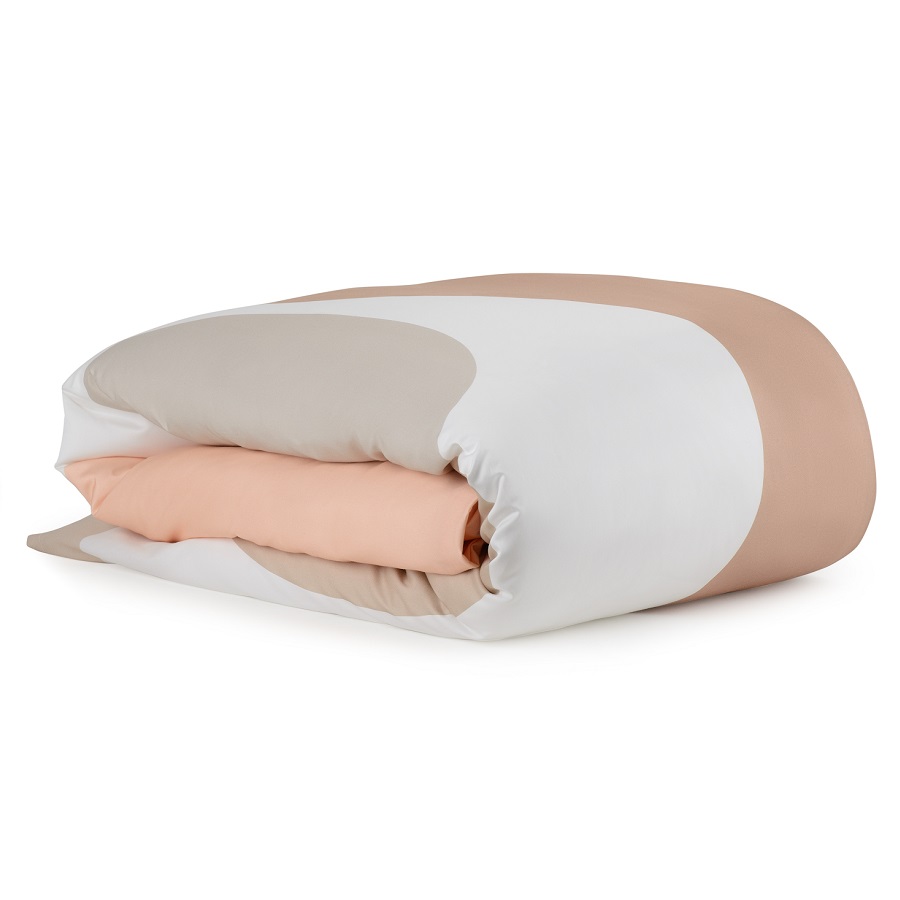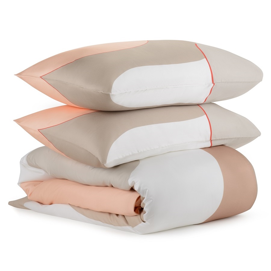 "Комплект постельного белья из сатина бежевого цвета с авторским принтом из коллекции Freak Fruit станет альтернативой однотонным изделиям и будет ярким дизайнерским акцентом в интерьере любой спальни. Абстрактный принт на каждом изделии не имеет повторяющегося раппорта и представляет собой единую законченную картину.
