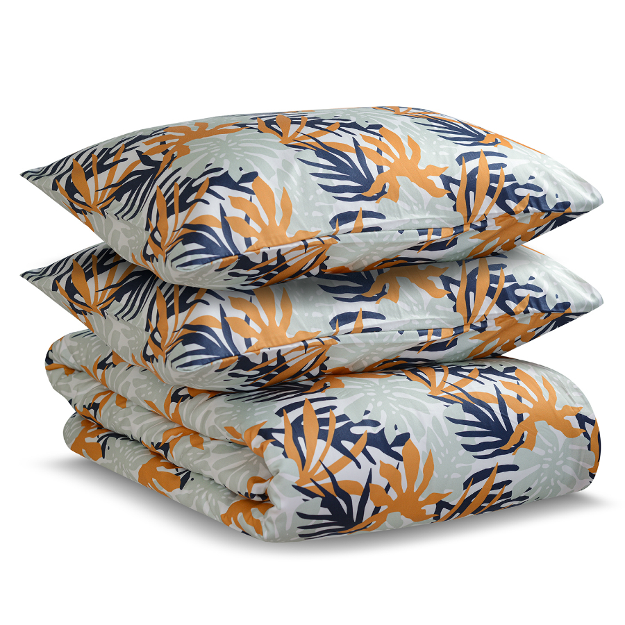 Комплект постельного белья из сатина цвета шафрана с принтом Leaves из коллекции Wild, 200х220 см