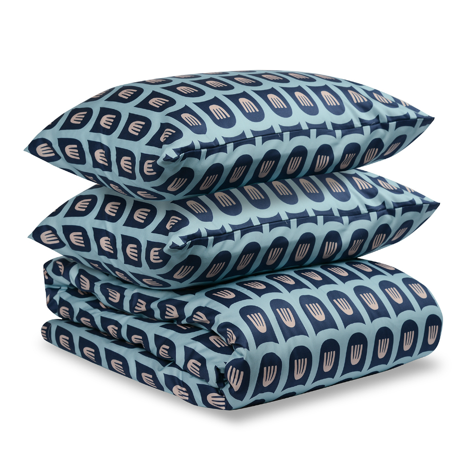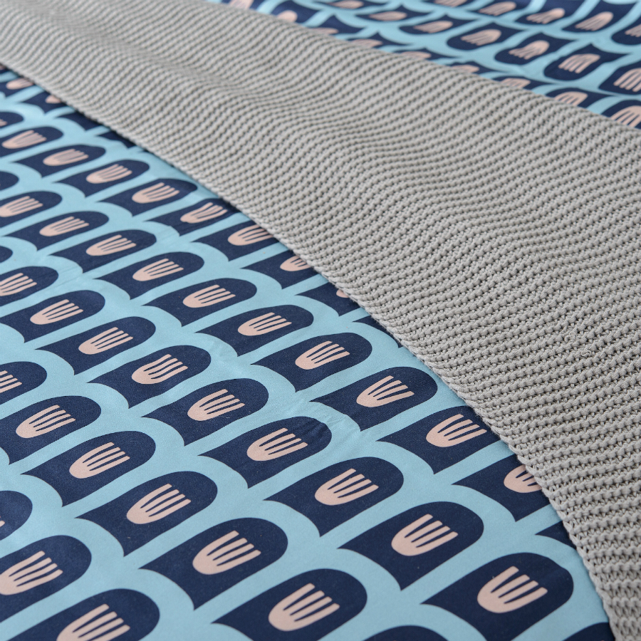 "Комплект постельного белья из сатина голубого цвета c принтом ",Blossom time", из коллекции Cuts&Pieces станет оригинальным акцентом в интерьере спальни. Прочный хлопковый материал не теряет яркость цвета и гладкость даже после множества стирок. Сатин плотностью 210 ТС подарит ощущение комфорта и нежности во время сна.