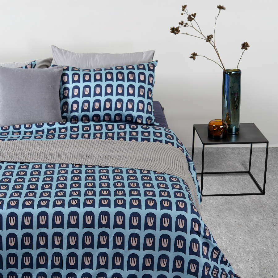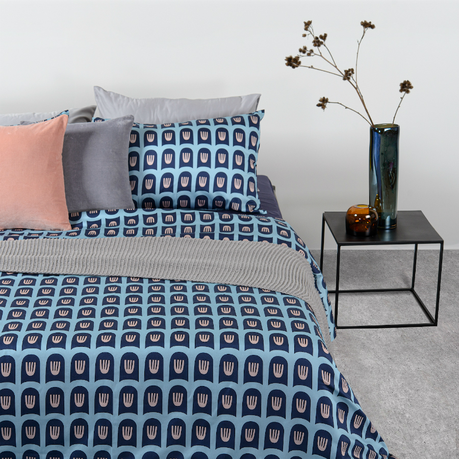 Комплект постельного белья из сатина голубого цвета с принтом Blossom time из коллекции Cuts&Pieces