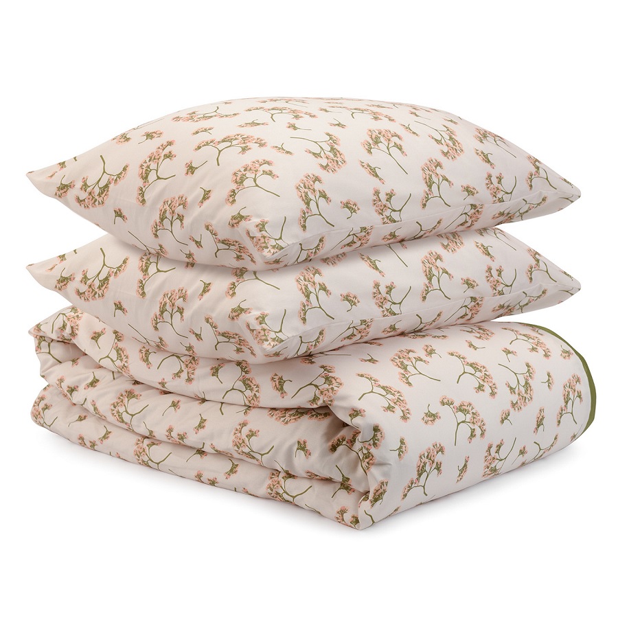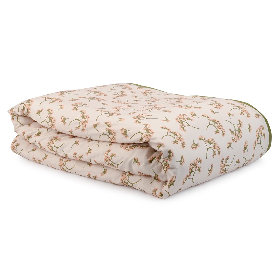 Комплект постельного белья из сатина оливкового цвета с принтом 'Степное цветение' из коллекции Prairie, 150х200 см