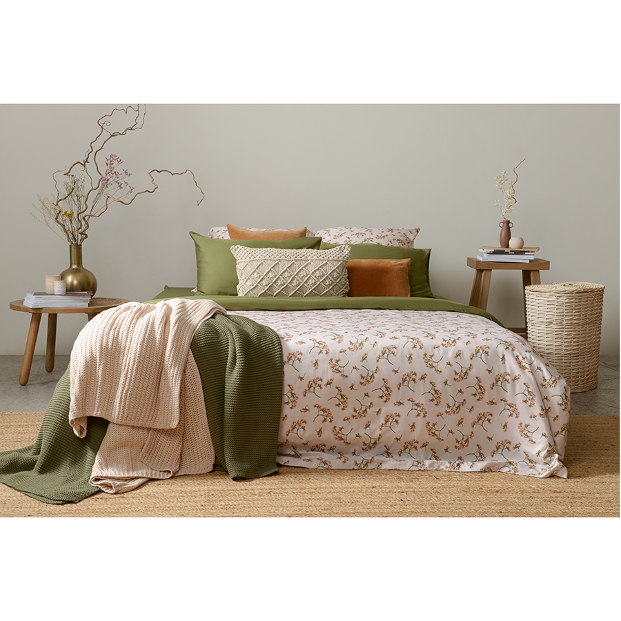 Комплект постельного белья из сатина оливкового цвета с принтом 'Степное цветение' из коллекции Prairie, 200х220 см